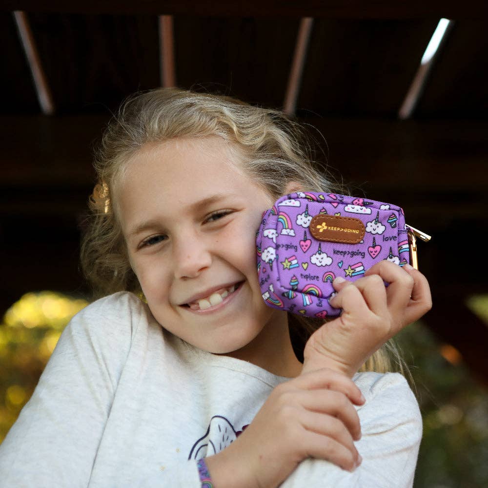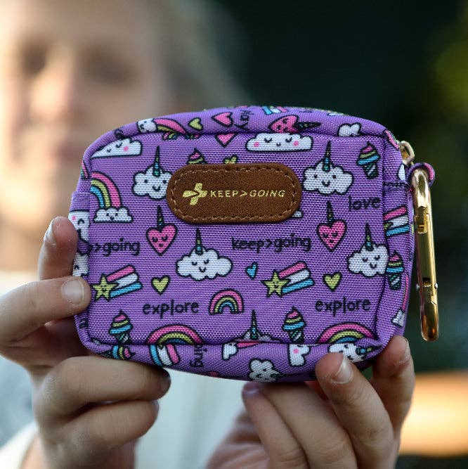 Carabiner attaches easily to backpack, stroller, or small purse