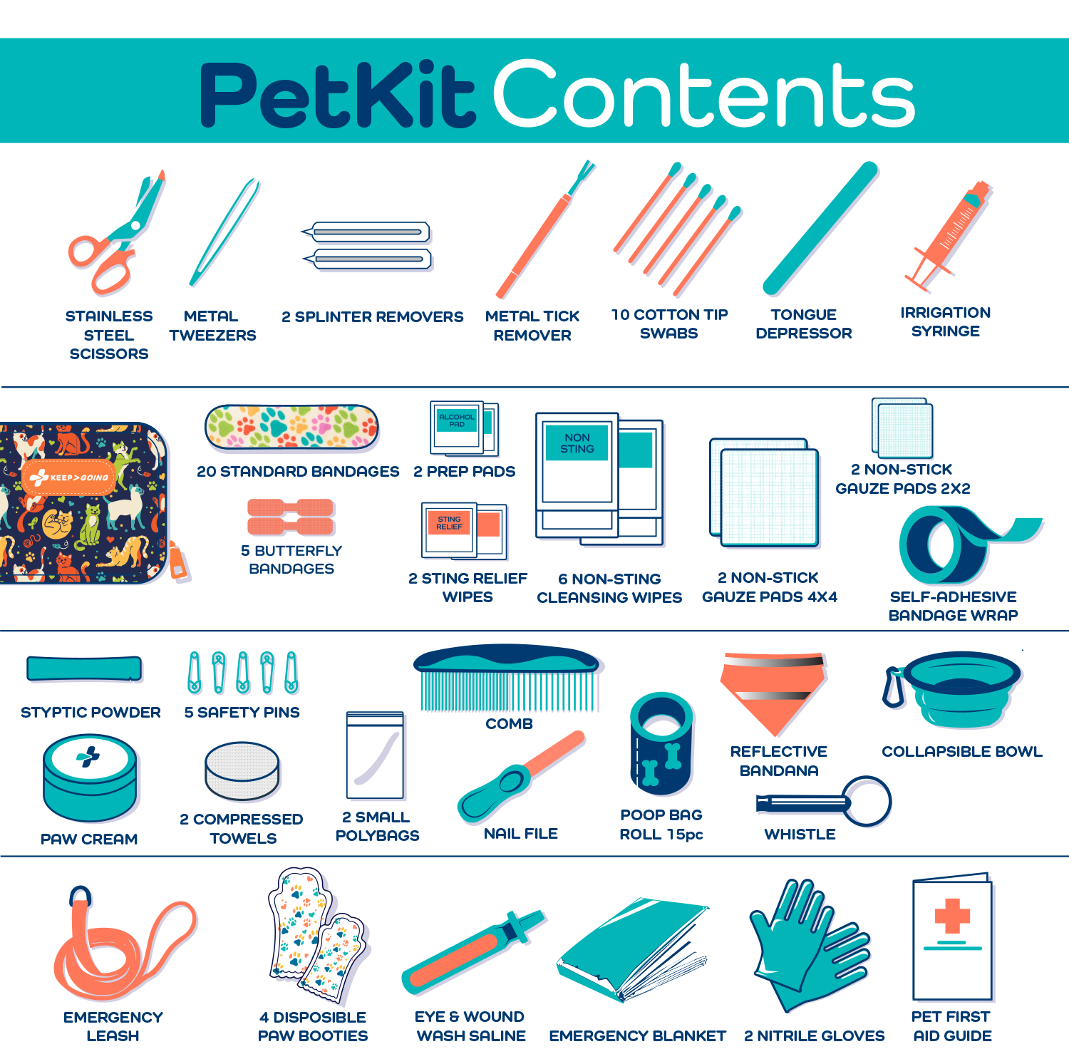 - Treat paw injuries, eye injuries, insect bites, ticks, bleeding, wounds, and much more * All Contents are 100% Latex-Free and PFAS Free