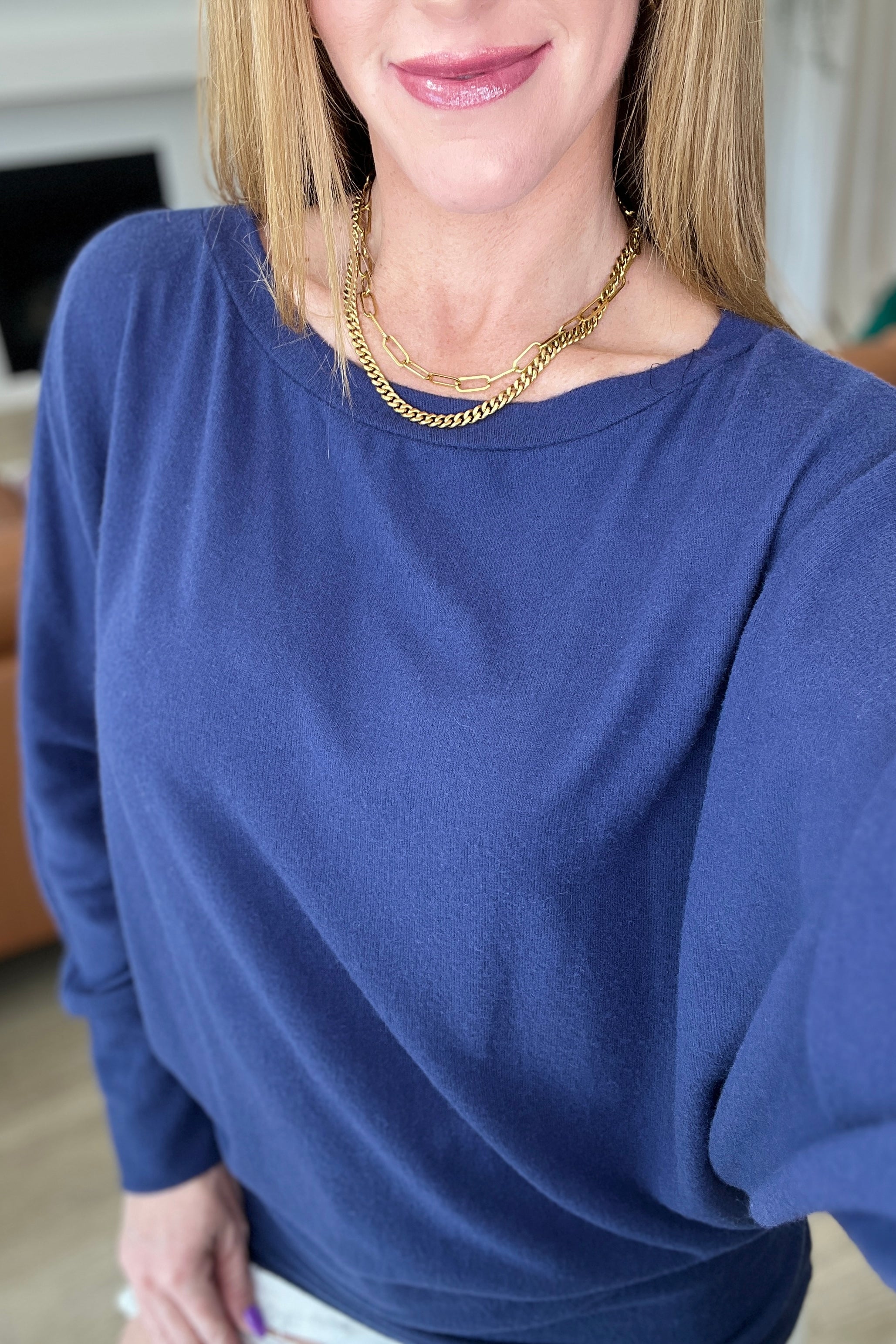 Stay cozy and chic with our Casually Comfy Batwing Top! Made with soft, brushed hacci fabric, this boat neckline top features batwing sleeves and an exaggerated cuff for a unique touch. Plus, its fitted hemline makes it a great basic for layering or wearing on its own!