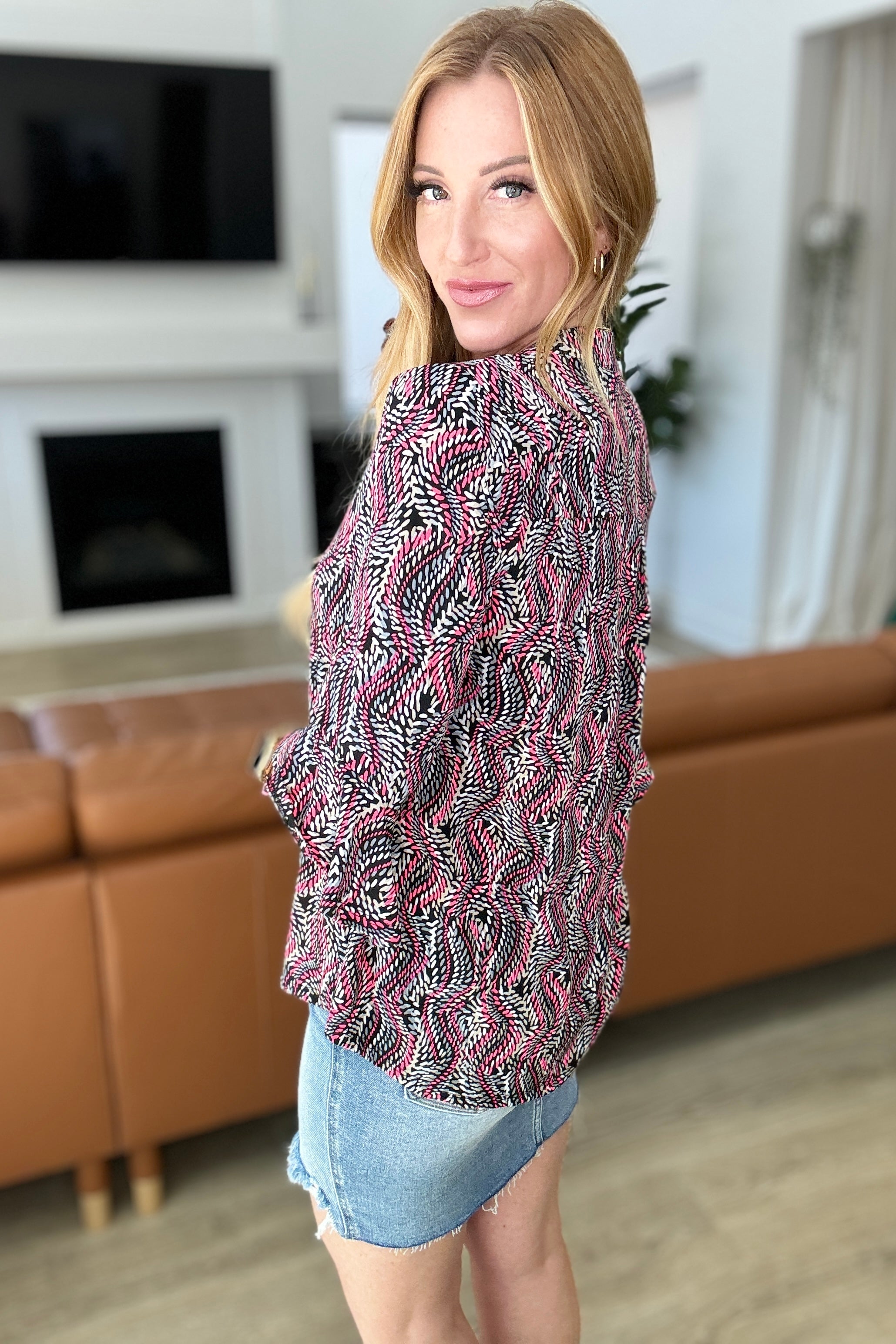 Lizzy Bell Sleeve Top in Black and Pink Rope