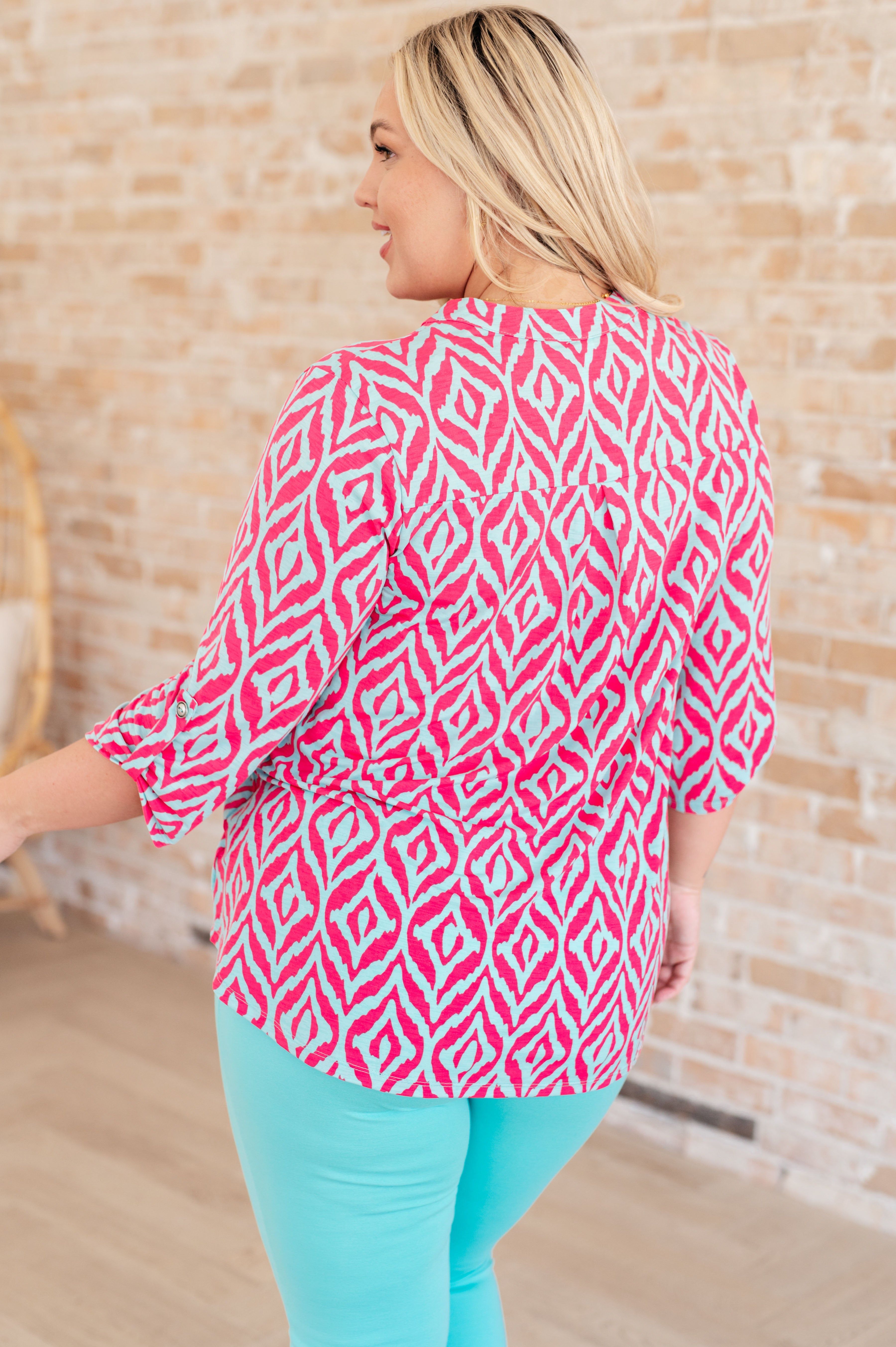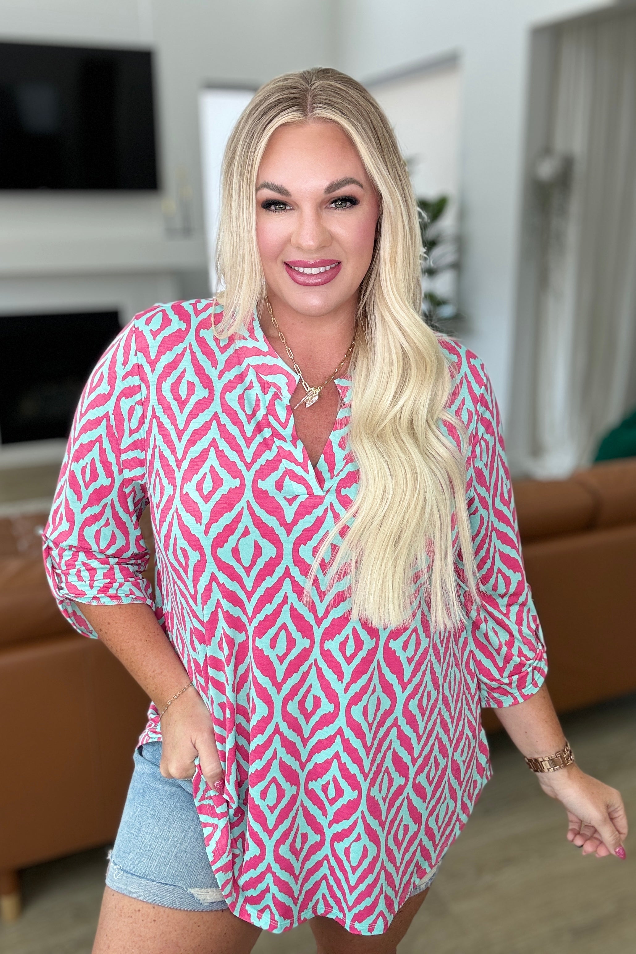 Transform your closet with the Lizzy Top. Made from Bulgari, this top features a v-neckline and rolled sleeves with button tabs for a comfortable, yet eye-catching piece. The 3/4 length sleeves and scoop hem add flow to the already stylish piece. Experience comfort and style in one with the Lizzy Top.