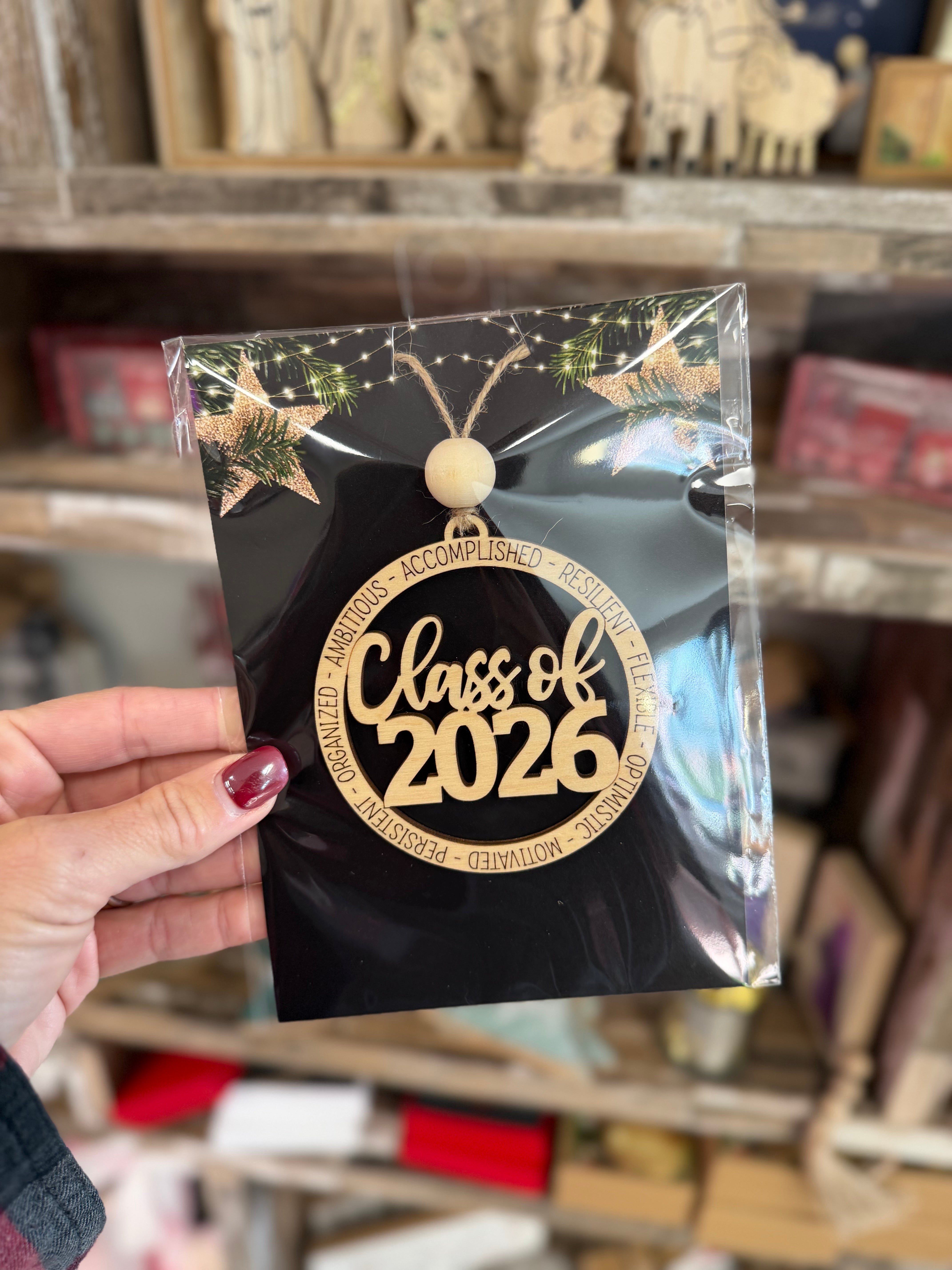 Celebrate your 2025 graduate with this wooden keepsake ornament. The ornament is hand painted and is made of speciality wood.