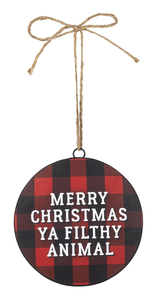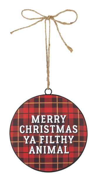 "Merry Christmas Ya Filthy Animal" Plaid Disc Ornament