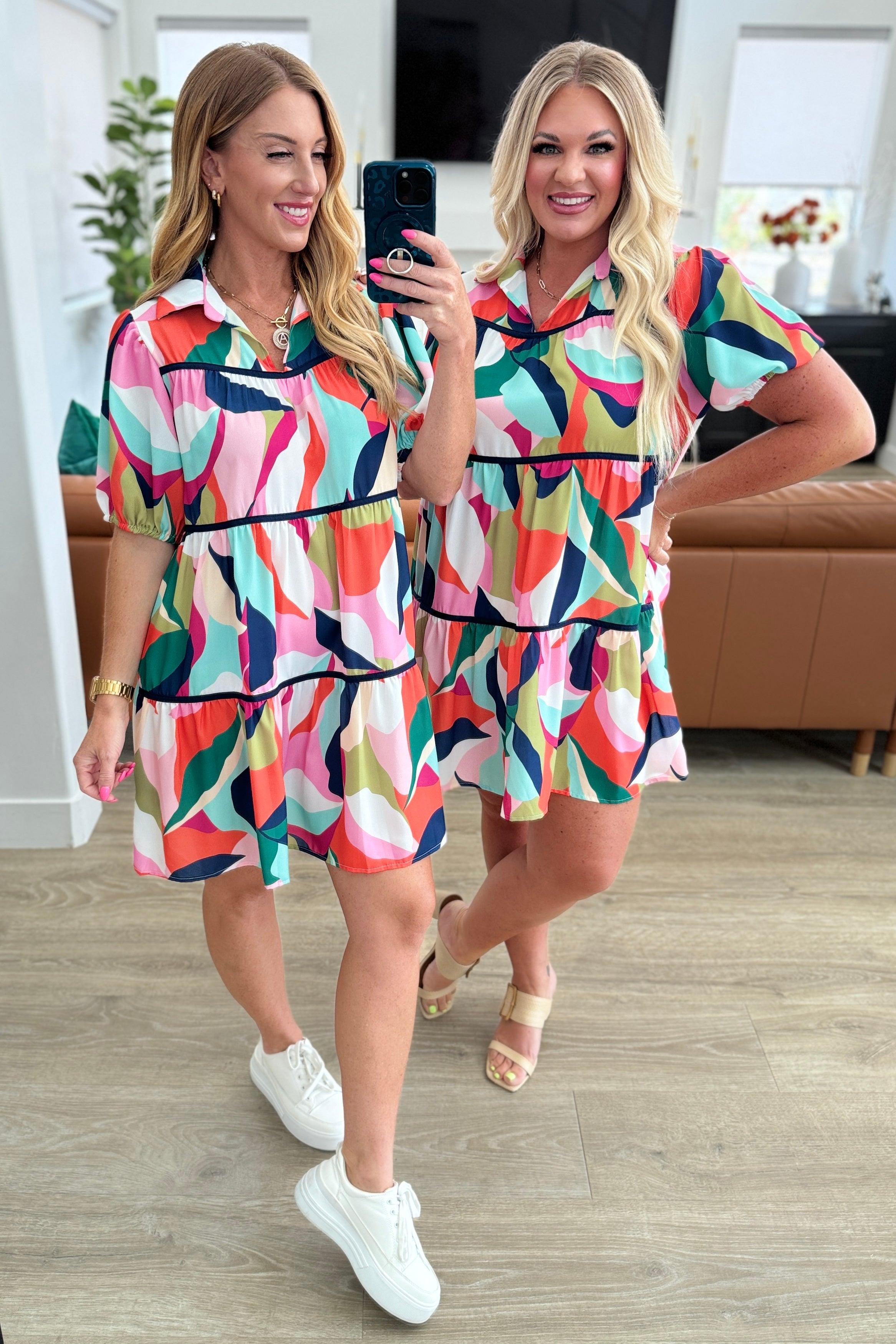 Add a touch of whimsy to your wardrobe with the Artist Valley Tiered Collared Dress. Crafted with a soft woven fabric and featuring a collared V-neckline, balloon sleeves, and a tiered babydoll silhouette, this dress is both stylish and comfortable. Perfect for any occasion, it's a must-have addition to your closet.