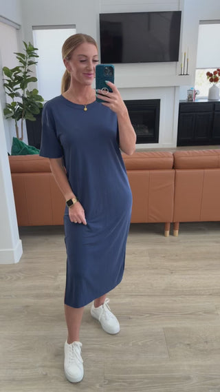 Stay cool and stylish in our Keeping It Chill Drop Shoulder Maxi Dress. Made with a knit fabric for a comfortable fit and high stretch for ease of movement. Featuring a banded round neckline and side slit for added breathability. Perfect for all-day wear, even on the hottest of days.