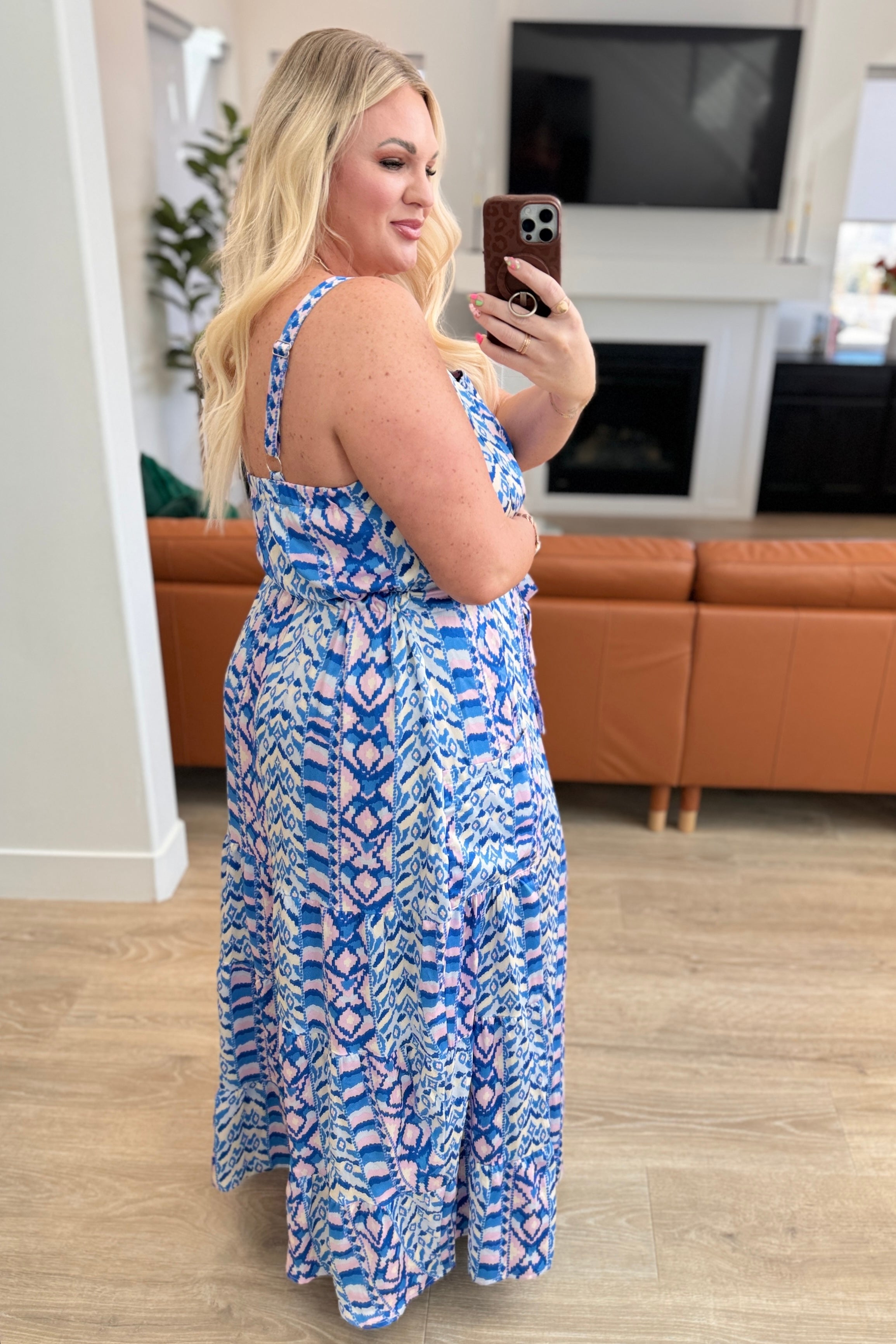 Don't miss out on this Seas The Day Maxi Dress! With functional front buttons, adjustable straps, and an encased waist tie belt for a perfect fit, you'll feel confident in this full-length dress. It's time to make a statement and seize the day in style!