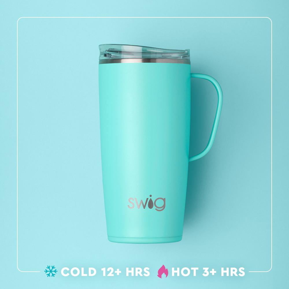 For those who love our classic mug but need a little bit more in their cup, our 22oz Travel Mug is a must-have. With more ounces to sip and a cup holder friendly profile, she's got what it takes to get through the morning commute.