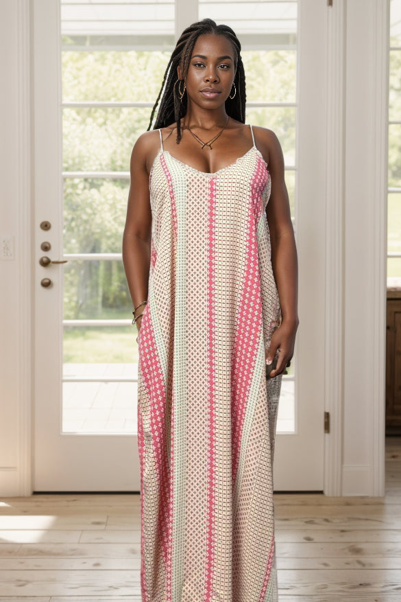Rule the fashion game in our Behold Your Queen Maxi, featuring a v-neck and spaghetti straps for a flirty touch. The flowy fit guarantees comfort while the side pockets add practicality. Say hello to your new wardrobe staple!