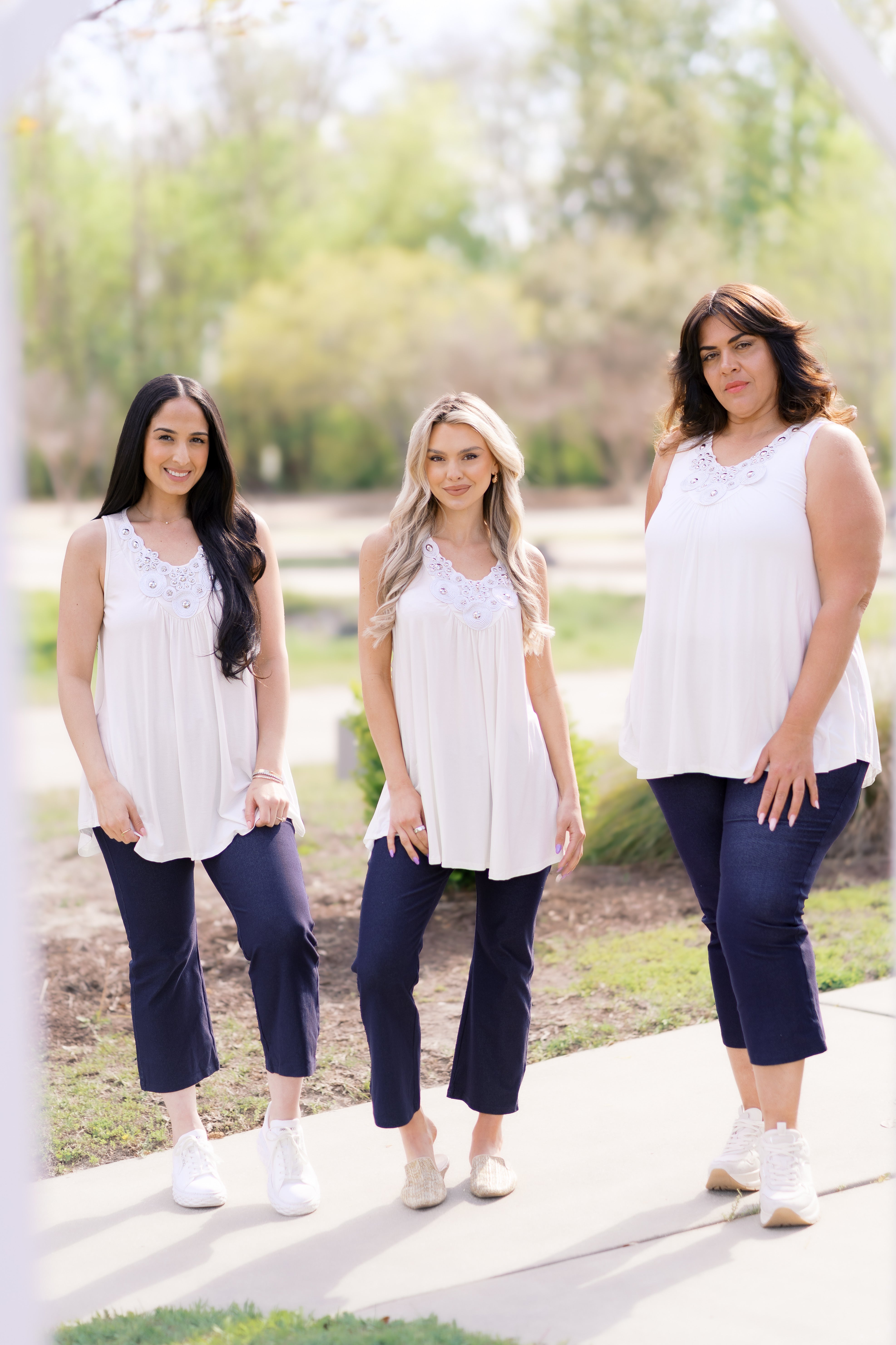 - Bust: S (16"), M (16"), L (17"), 1X (18"), 2X (19"), 3X (20")