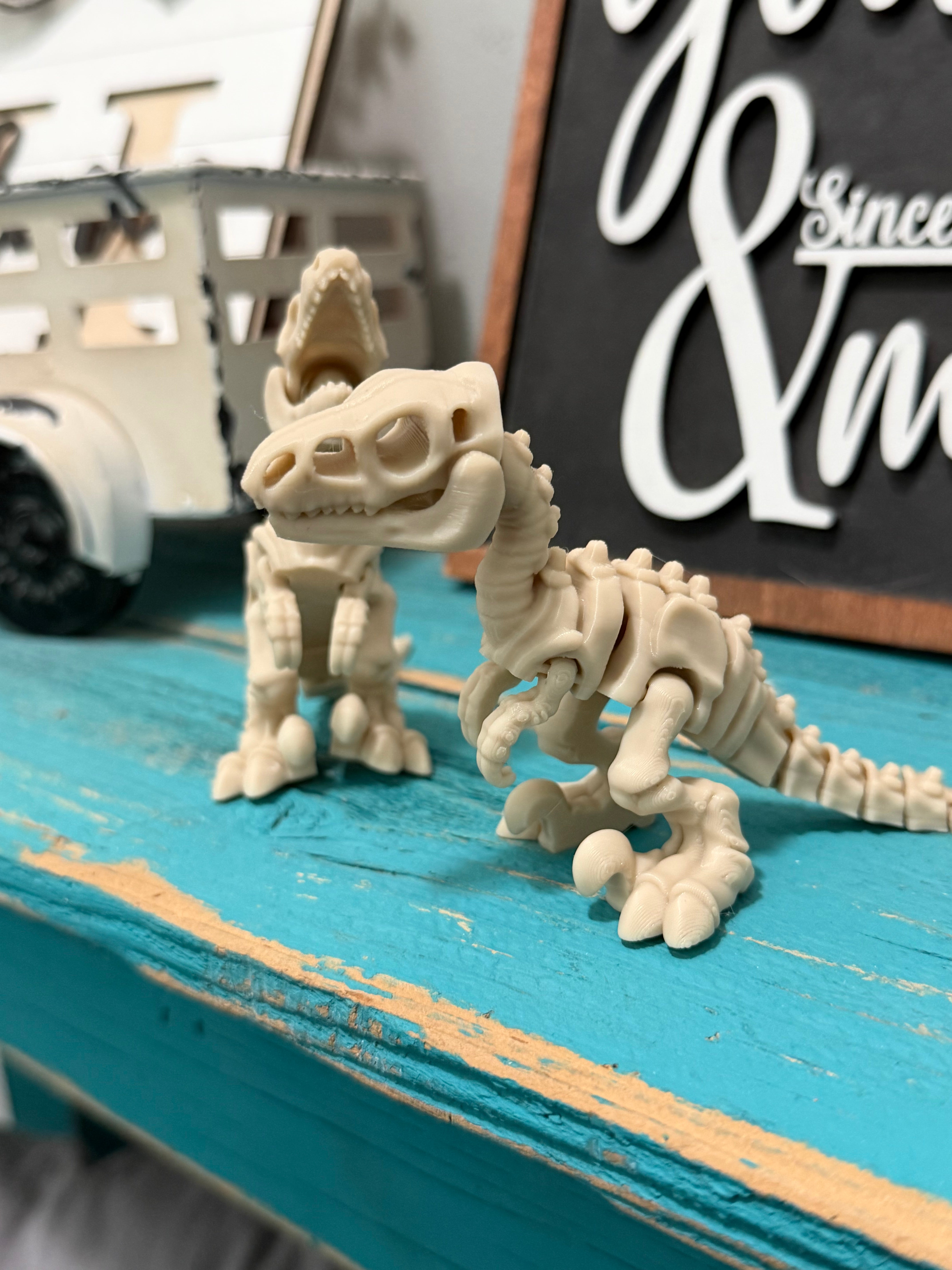 These mini flexi dino skeletons are the perfect mix of spooky, cool, and fun! Each dinosaur is 3D printed and features a fully articulated, flexible design that moves and wiggles with every twist.