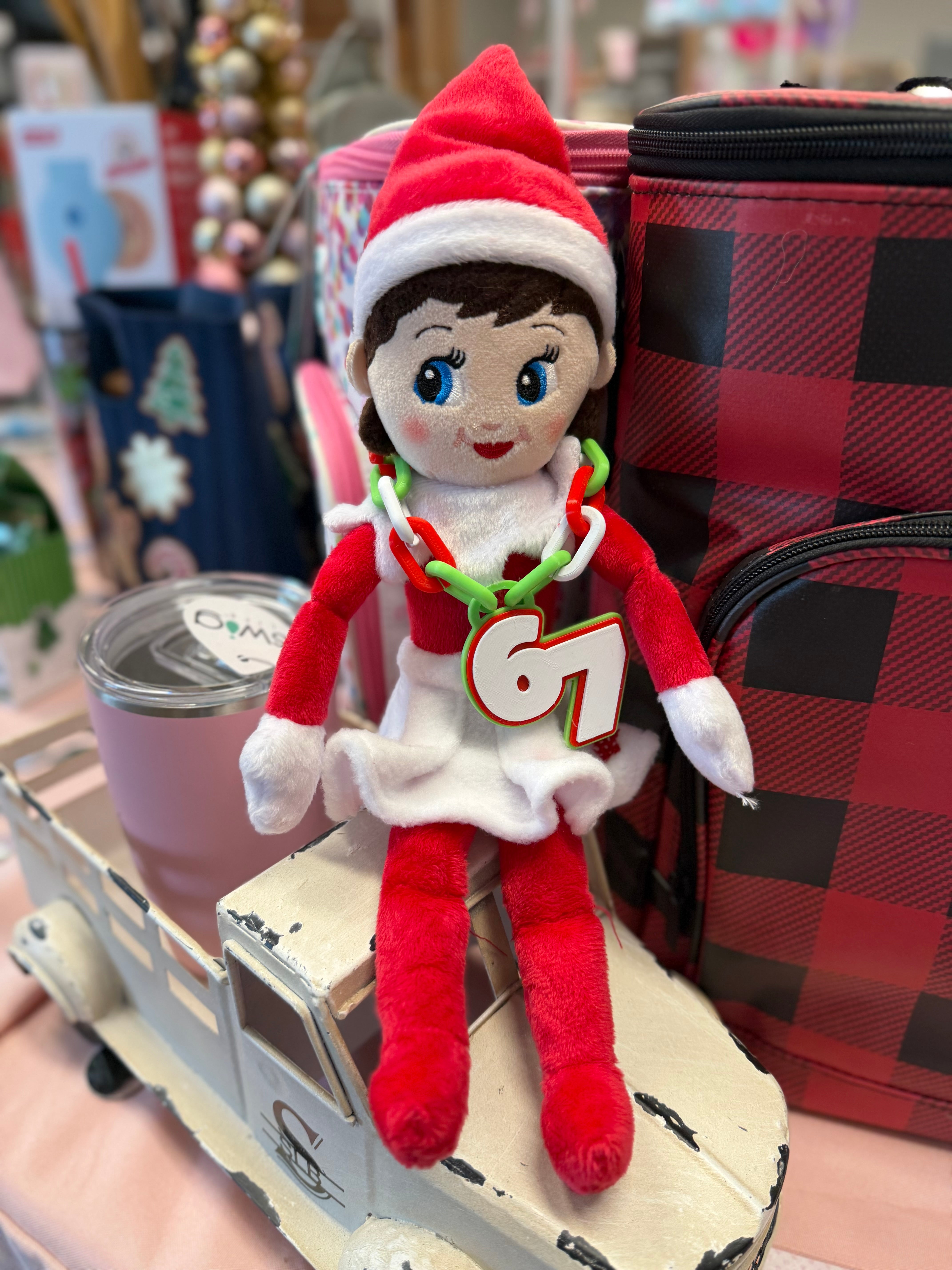This Elf Size 6–7 Hype Chain brings instant charm, personality, and festive fun to your elf’s daily antics. Featuring bold red, green, and white colors with a lightweight “67” emblem, it stands out beautifully in photos. 📸