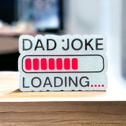 Drive with dad-approved humor with Dad Joke Loading Freshie. This car freshie delivers refreshing scents (can't promise refreshing puns) while loading up your car with dad jokes (pun intended). Just hang it up and let the laughter ride (not included)
