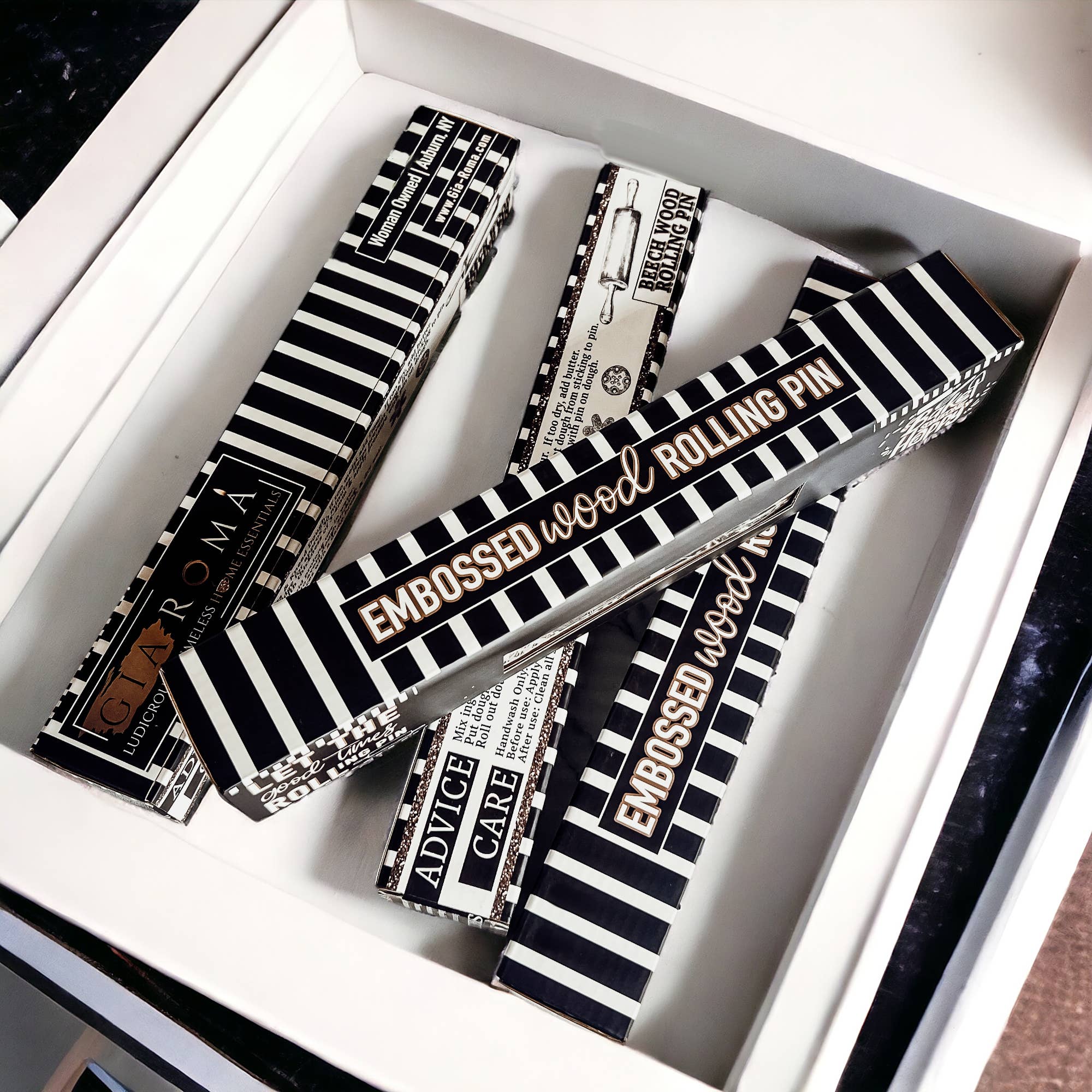 A 13.75” standard beech wood rolling pin that comes packaged nicely in a gift box!