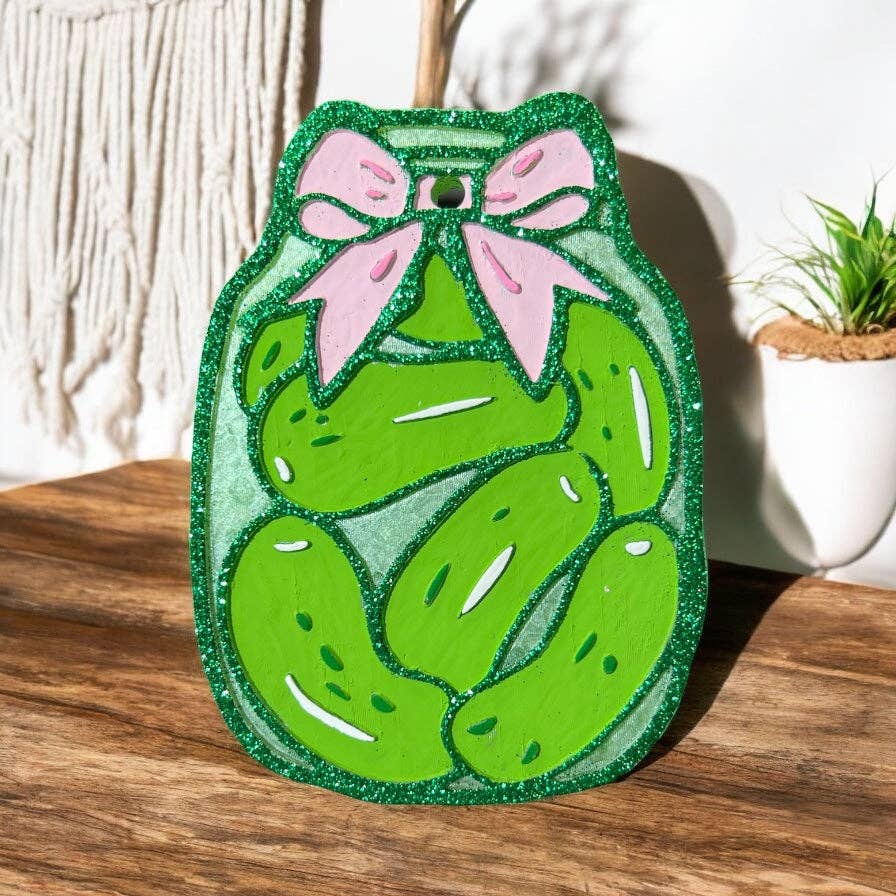 Spice up your kitchen with our Pickle Jar Freshie! This quirky jar features a cute bow and a fun design, making it a perfect gift for yourself or a loved one. Its unique style adds a pop of personality to any space. Pick one up today (for yourself or as a gift)!