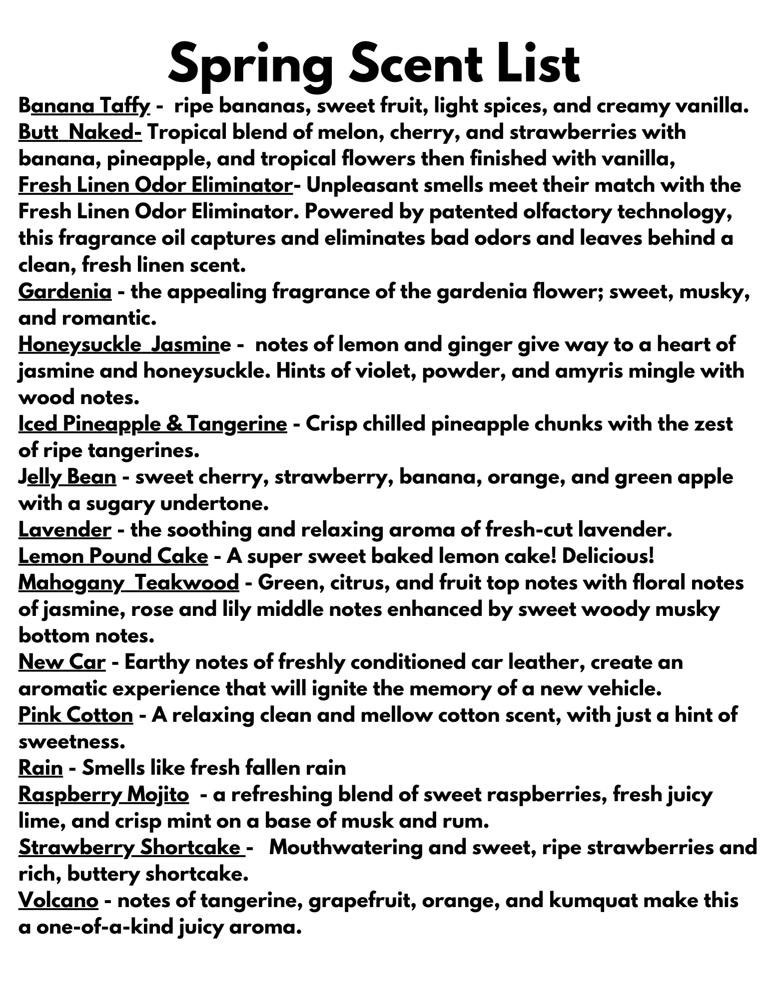 All freshies come with an elastic string and in a scent-proof package. Keep away from children and pets, for decorative use only. We suggest hanging your freshies, if placing on a finished surface, please use a freshie stand or a barrier to prevent damage.