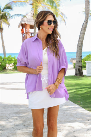 PREORDER- Sutton Button Up Top- Lavender