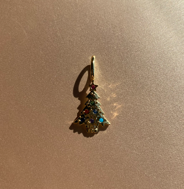 Why We Love It! This adorable Christmas Tree Charm is reversible and can be worn with our lovely bright white crystals showing or with the lovely solid gold side showing. We're in the gift-giving spirit already.