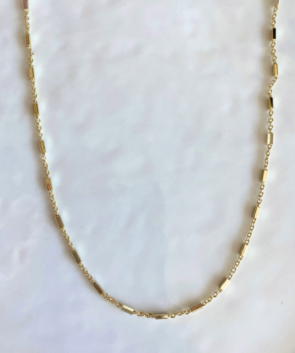 Style: Decorative bars between our most coveted cable chain. This chain is delicate but incredibly light reflective.