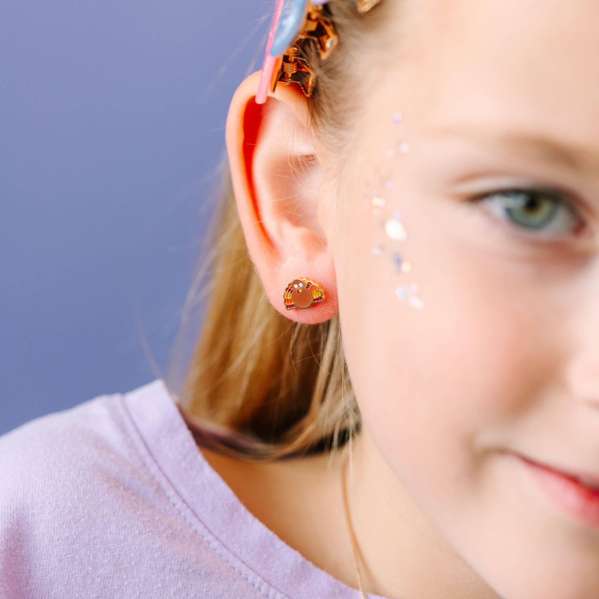 High-quality earrings made for girls with sensitive ears and to join them on their everyday adventures. Materials * Surgical grade stainless steel * 18K gold plated * Lead & nickel free * Enamel * Always hypoallergenic Details * Flat screw-back * Ultra-thin post measuring .8mm (20 gauge) * 8mm post * Waterproof - can be worn in the pool and bath Exclusive Pierced Co Extras * 100% guaranteed to be sensitive free or your order is free * Each order comes with an extra pair of backs