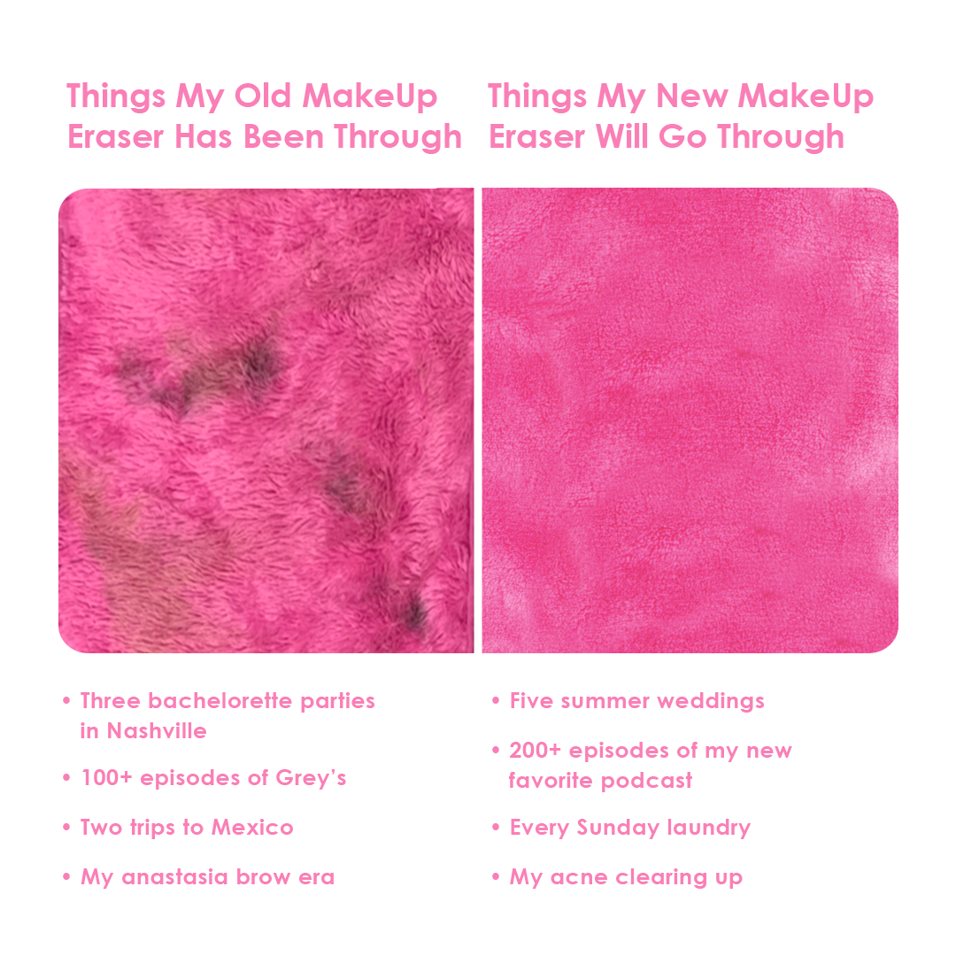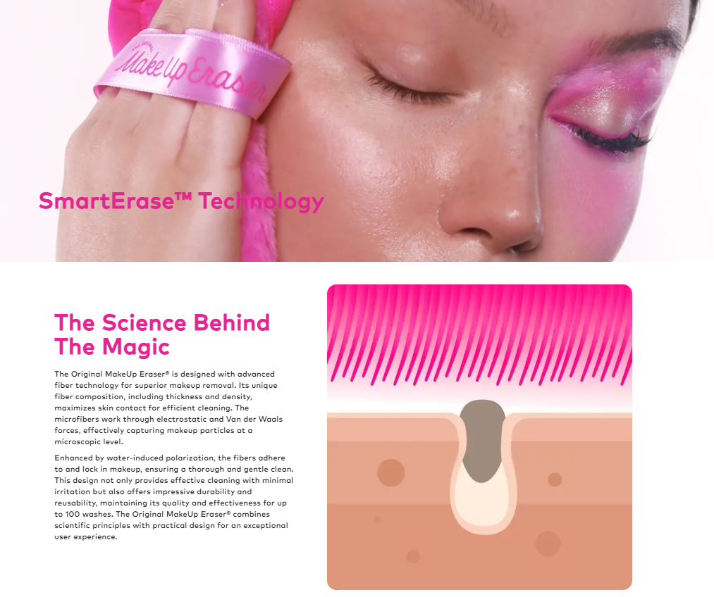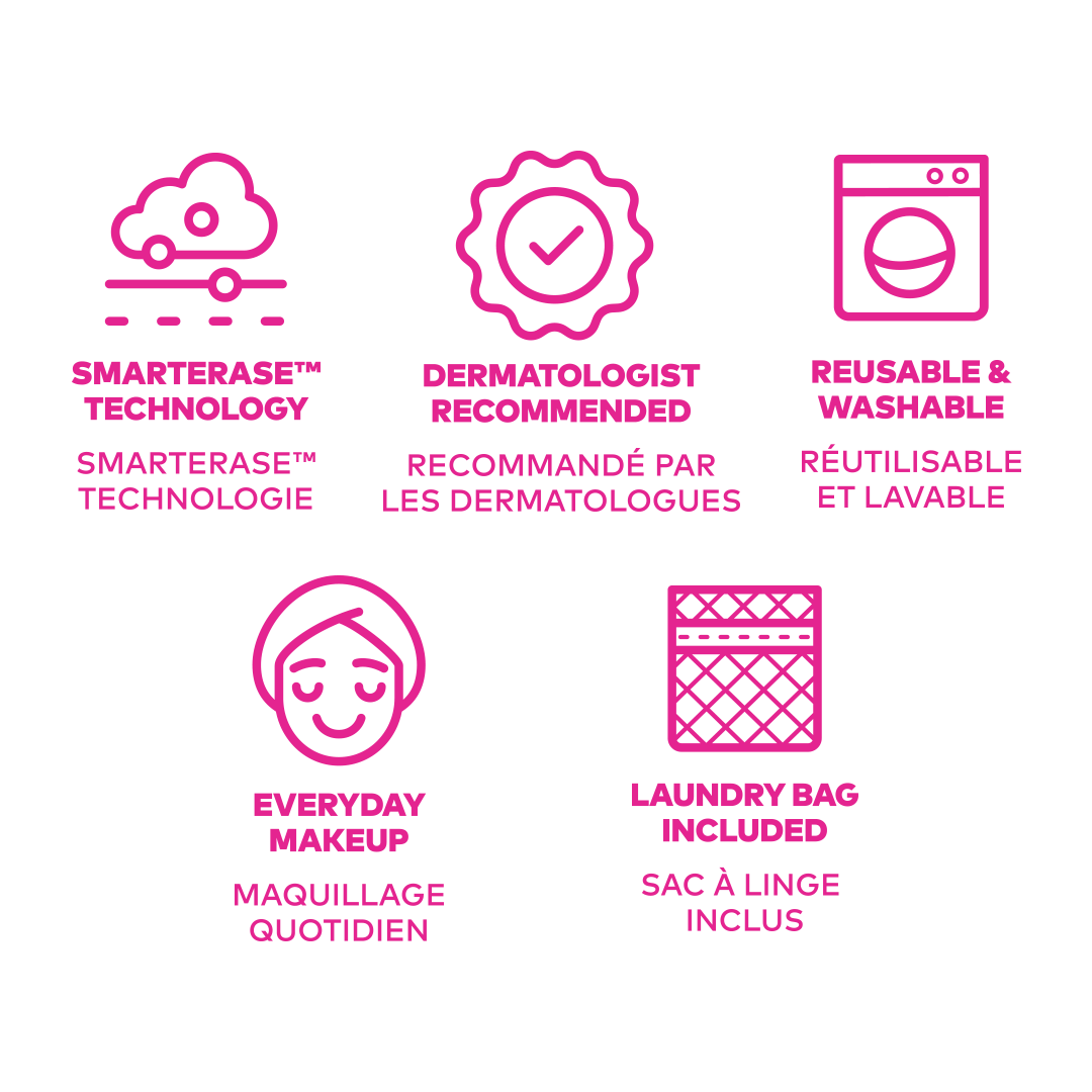 Includes: (7) daily cloths 5" x 4" & laundry bag Erase all makeup with JUST WATER™ including waterproof. Our patented, water-activated, cloud-soft fibers gently & easily remove all makeup & sunscreen from pores.