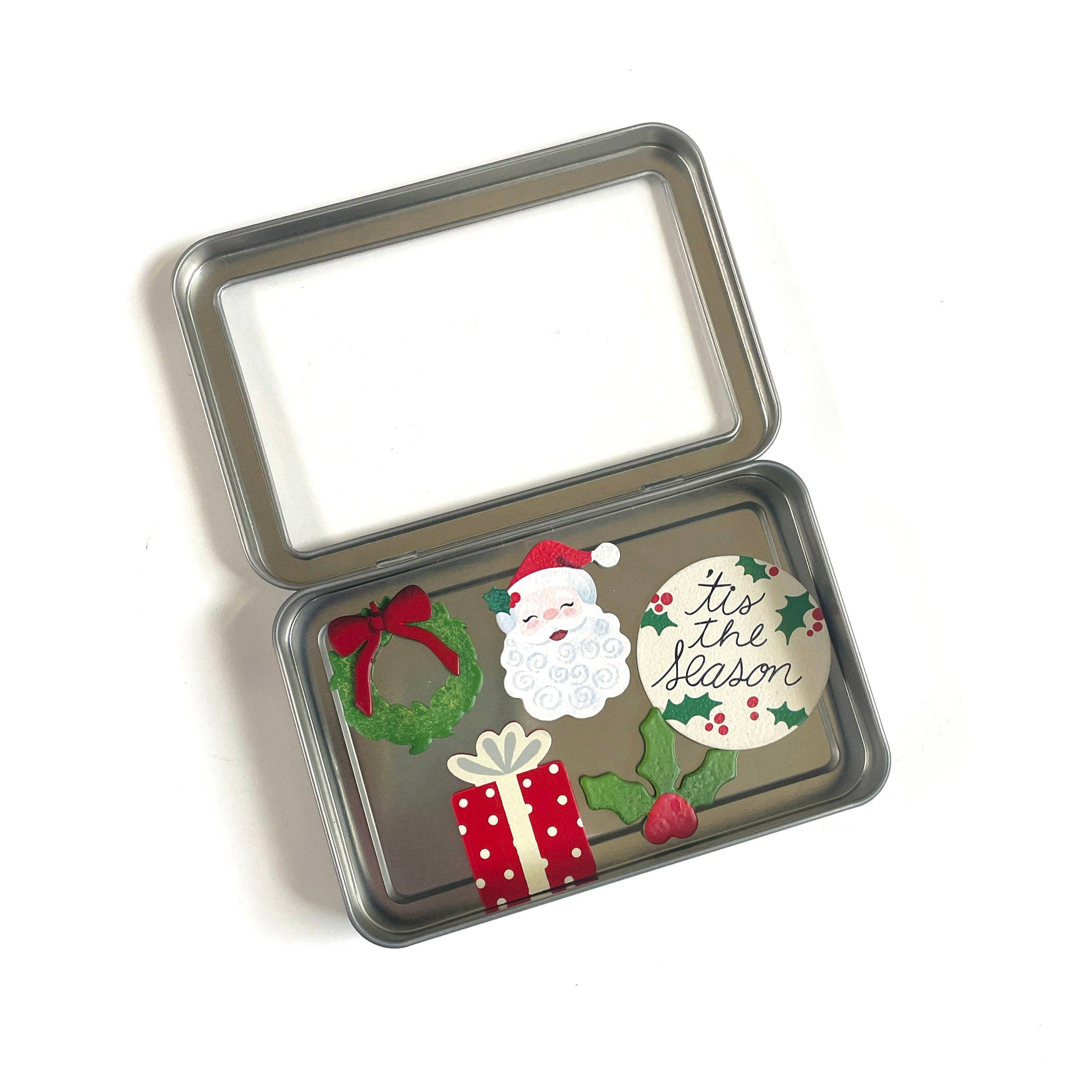 Our Christmas Magnet Gift Set includes 5 mini magnets in a magnetic tin, perfect for gifting or using as magnet storage! Each Roeda magnet is a work of art that will brighten your life! Metal art magnets are designed to be combined with Roeda frames and memo boards to create whimsical, colorful, personalized art for your home. They can be placed on your desk, coffee table, or anywhere you’d like to display your photos or notes. The final creation is up to you!