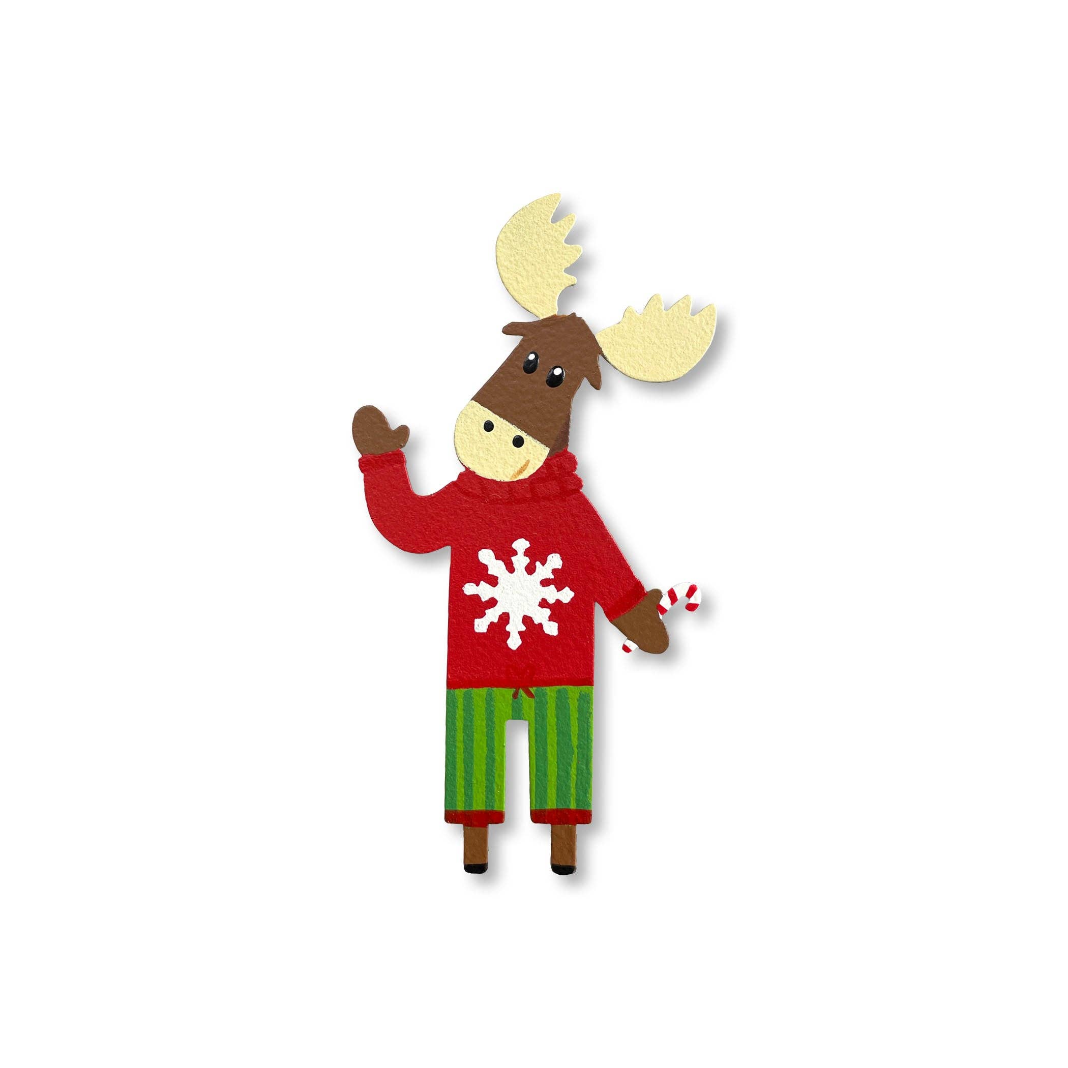 This cozy moose will add holiday joy to any magnet display! Each piece of Roeda decorative art is cut from steel and hand-painted—a magnetic work of art that will brighten your life! Metal art magnets are designed to be combined with Roeda frames and memo boards to create whimsical, colorful, personalized art for your home. The final creation is up to you!