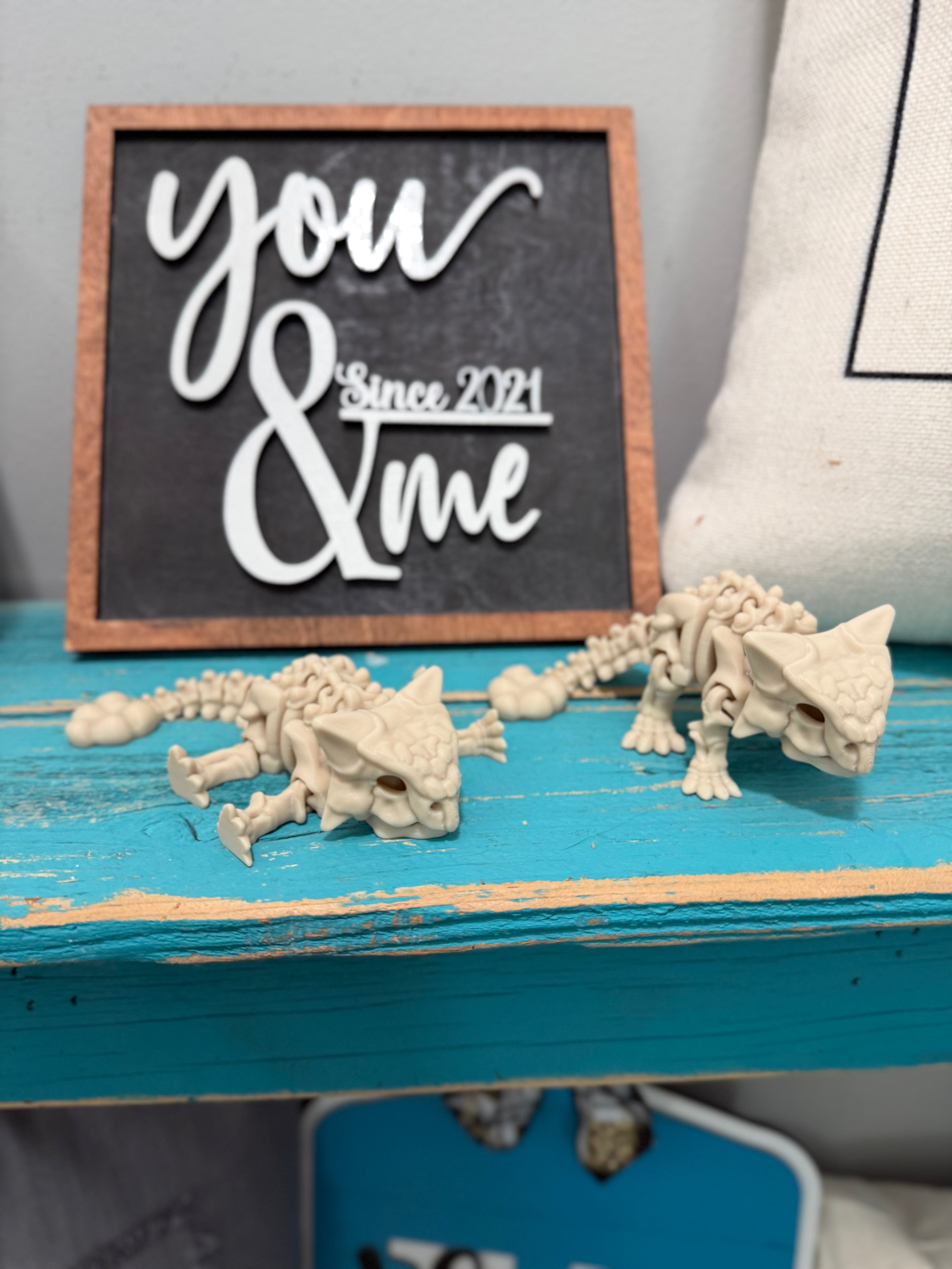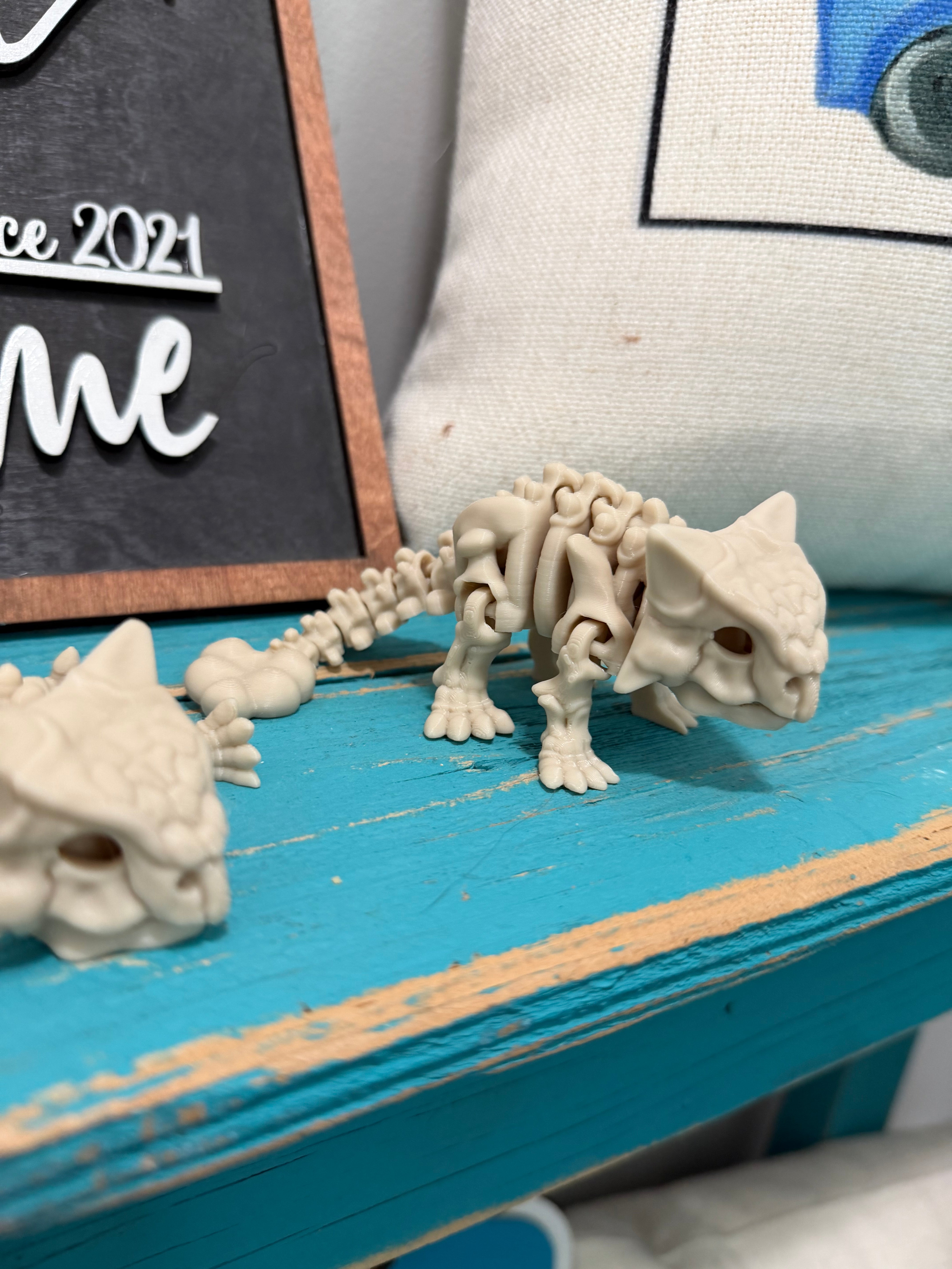 These mini flexi dino skeletons are the perfect mix of spooky, cool, and fun! Each dinosaur is 3D printed and features a fully articulated, flexible design that moves and wiggles with every twist.