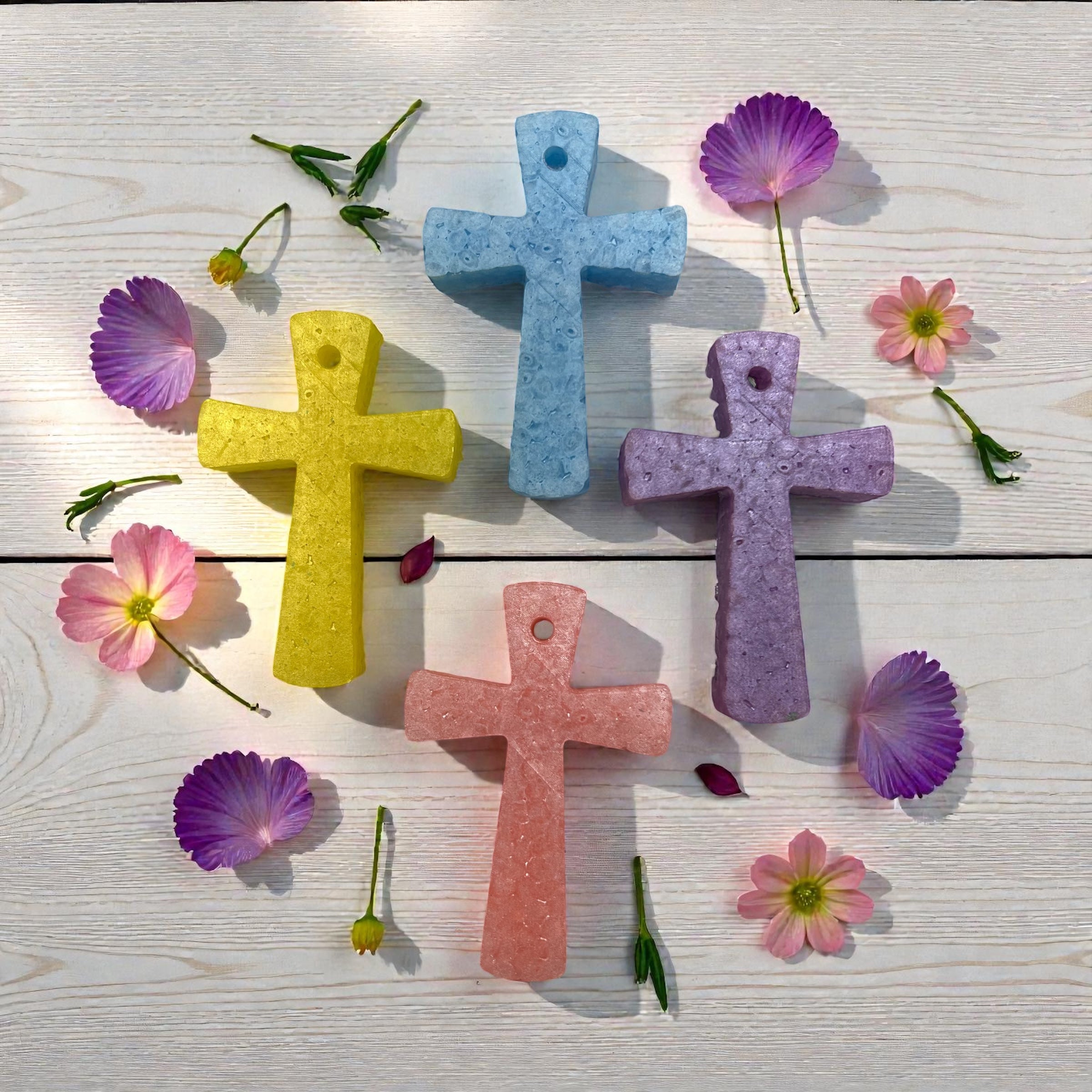 Freshen up your ride or room with this charming Medium Cross Freshie! These come assorted colors and scents. This compact companion brings delightful aromas wherever you need them most—dashboard, closet, bathroom, you name it. The perfect little pick-me-up gift for anyone who loves keeping their space smelling fresh and fabulous.