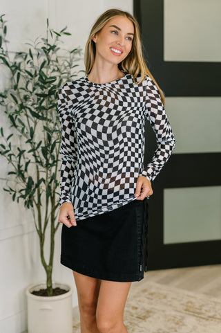 PREORDER: Sheer Long Sleeve Checkered Layering Top in Three Colors