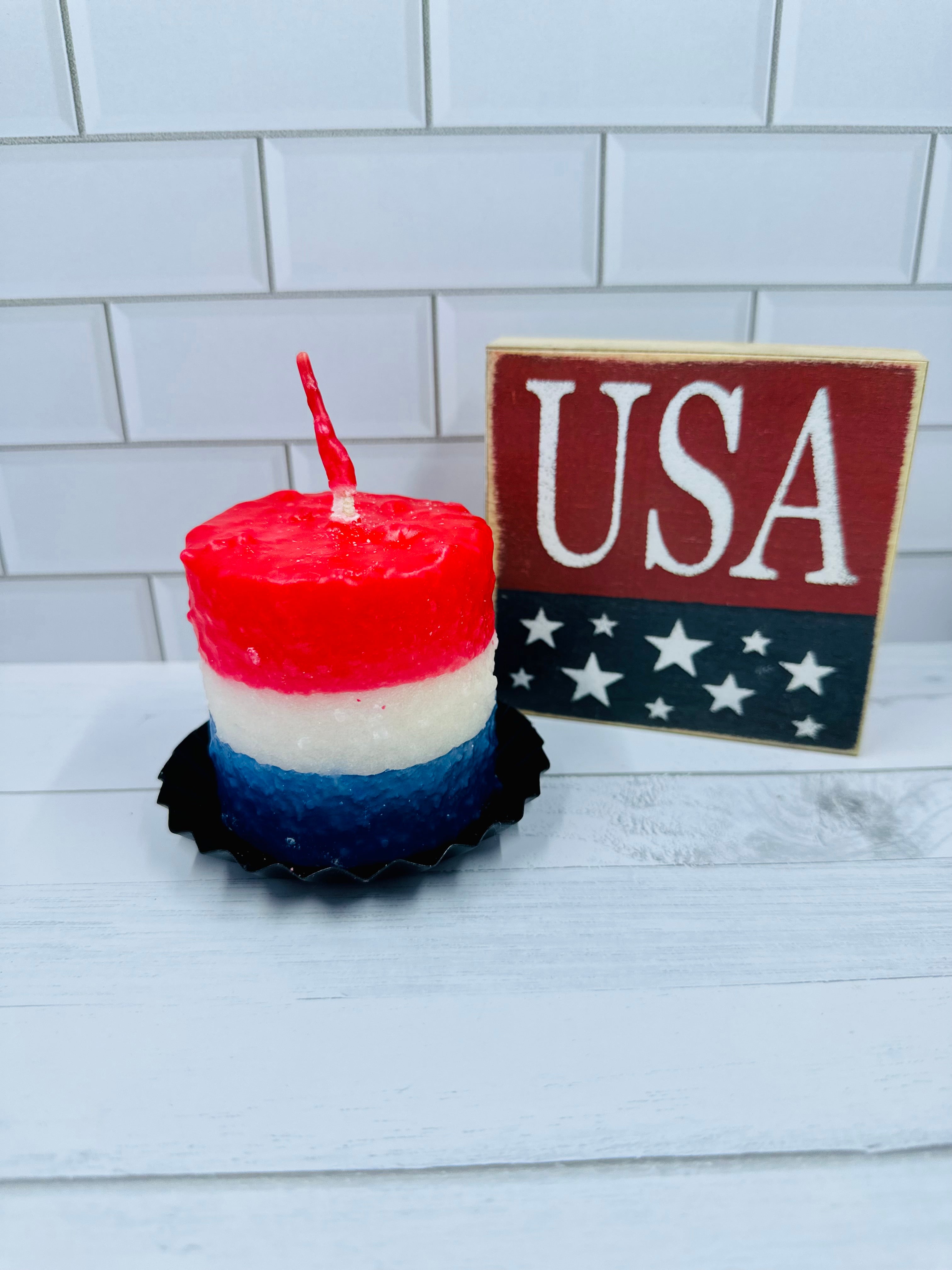 This All-American candle is great year-round with its blueberry fragranced core dipped in red, white, and blue exterior.