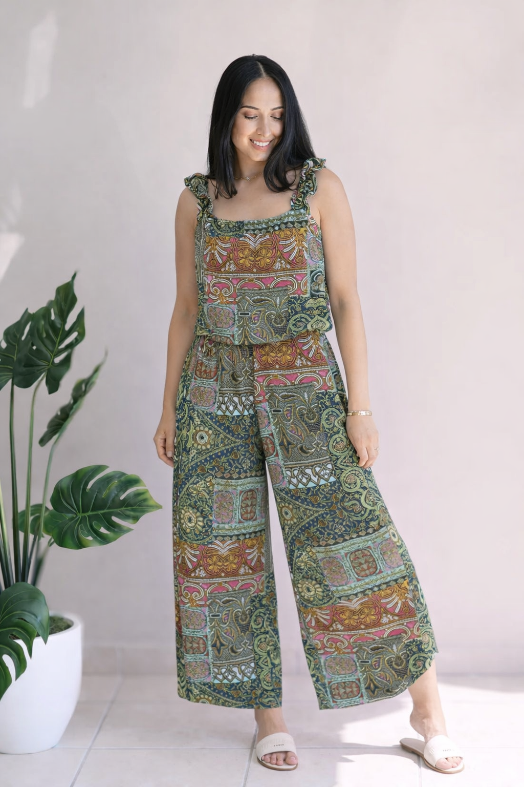 Pop on our Atlantis Jumper and sail away in style! With an eye-catching ITY print, flattering square neck, and flowy ruffled shoulder straps, it's the perfect pick for the adventurous fashionista. So set sail and make waves!