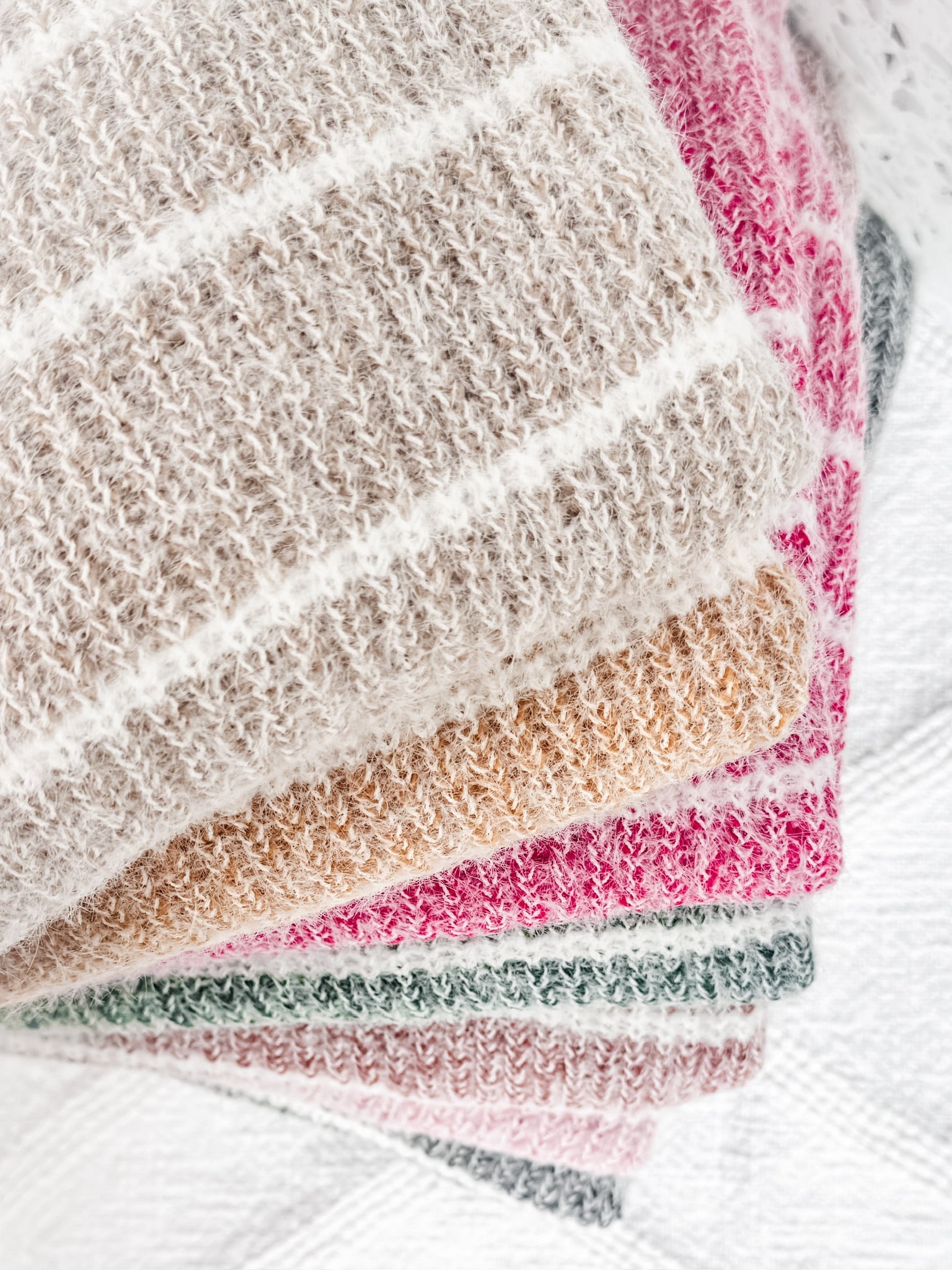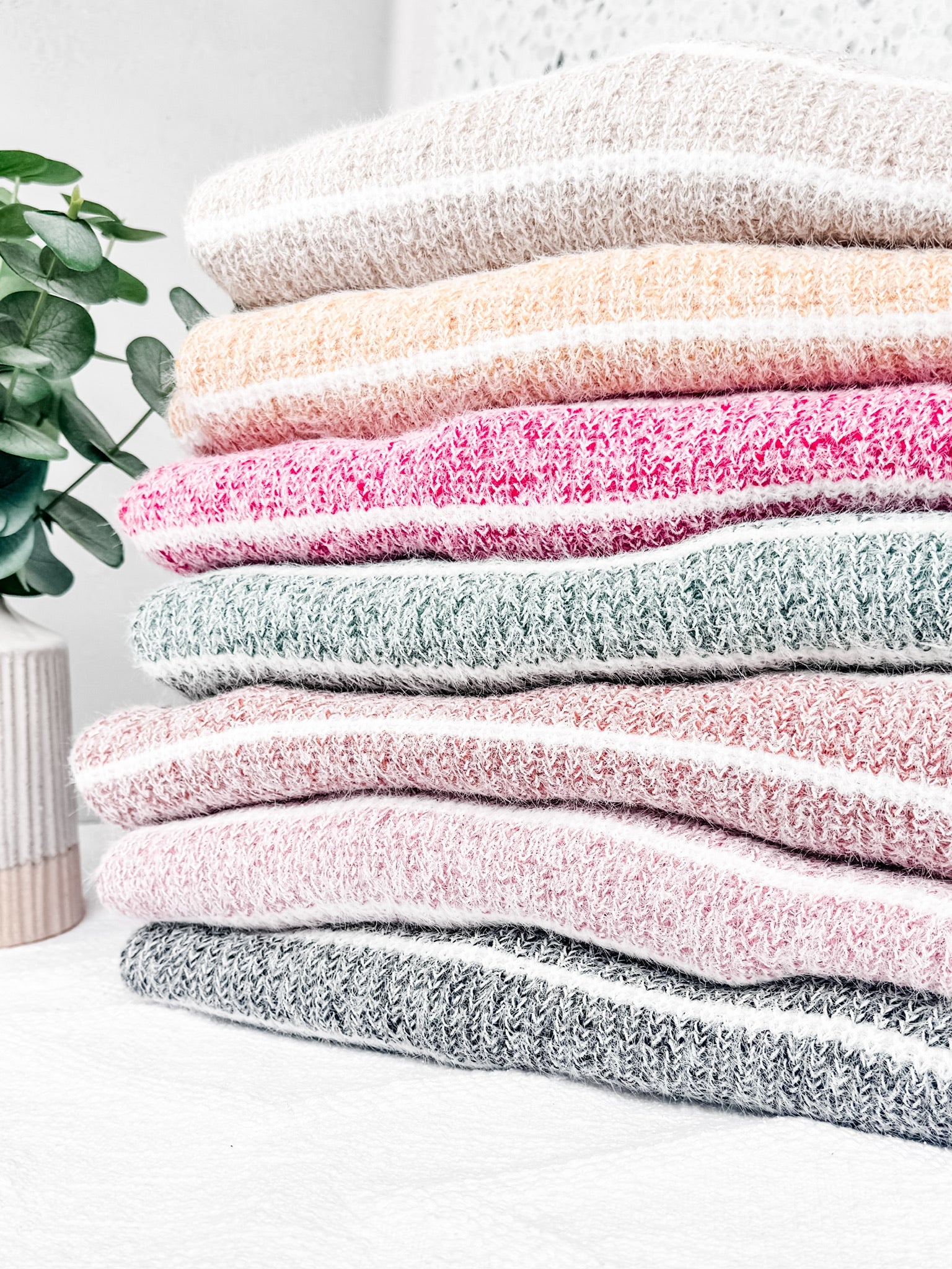 Stay cozy and stylish in our Cozy Striped Sweater. Made with super soft material, this v-neck sweater is slightly oversized for a comfortable and effortless fit. Perfect to complete your fall look, it's a must-have for the season.