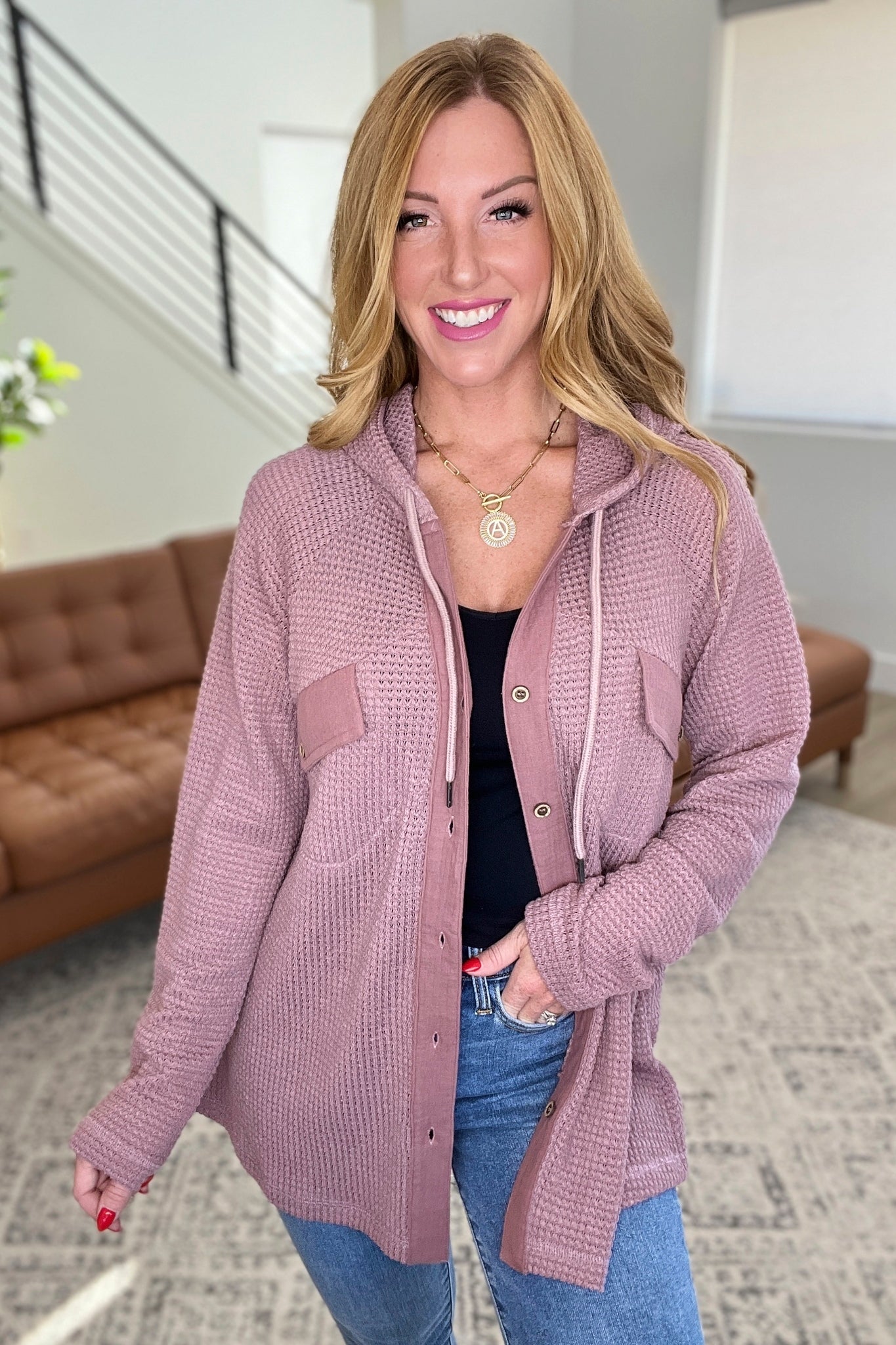 This Best Case Scenario Hooded Pullover is designed for easy comfort. Crafted with a waffle knit fabric adorned with a button front and generous hood, you can take on your day with warmth and style.
