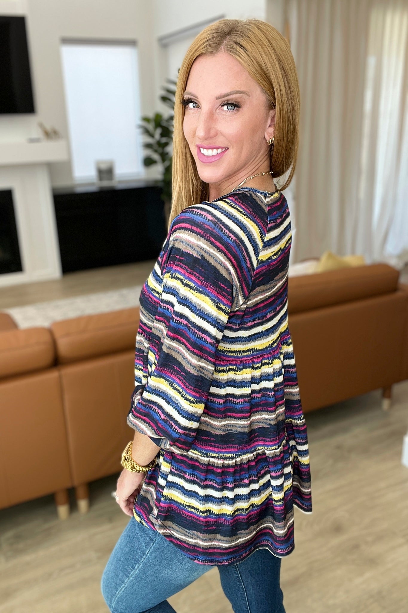 Our Circle Back Striped V-Neck Top is sure to make an impact! It's made with effortless bulgari fabric and features a stylish variegated stripe pattern along with a v-neckline and tiered construction - perfect for adding a touch of flair to your wardrobe. Could this be your new go-to favorite top?