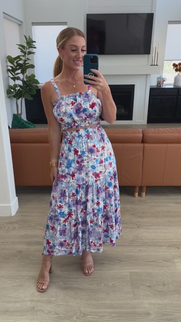 Get ready to twirl in style with the Cutie Patootie Tiered Skirt and Top Set in Blue! This woven set features a comfortable elastic waistline and adjustable straps for the perfect fit. The fully lined top and 3/4 lined skirt provide added coverage, while the tiered design adds a playful touch. Perfect for any occasion!
