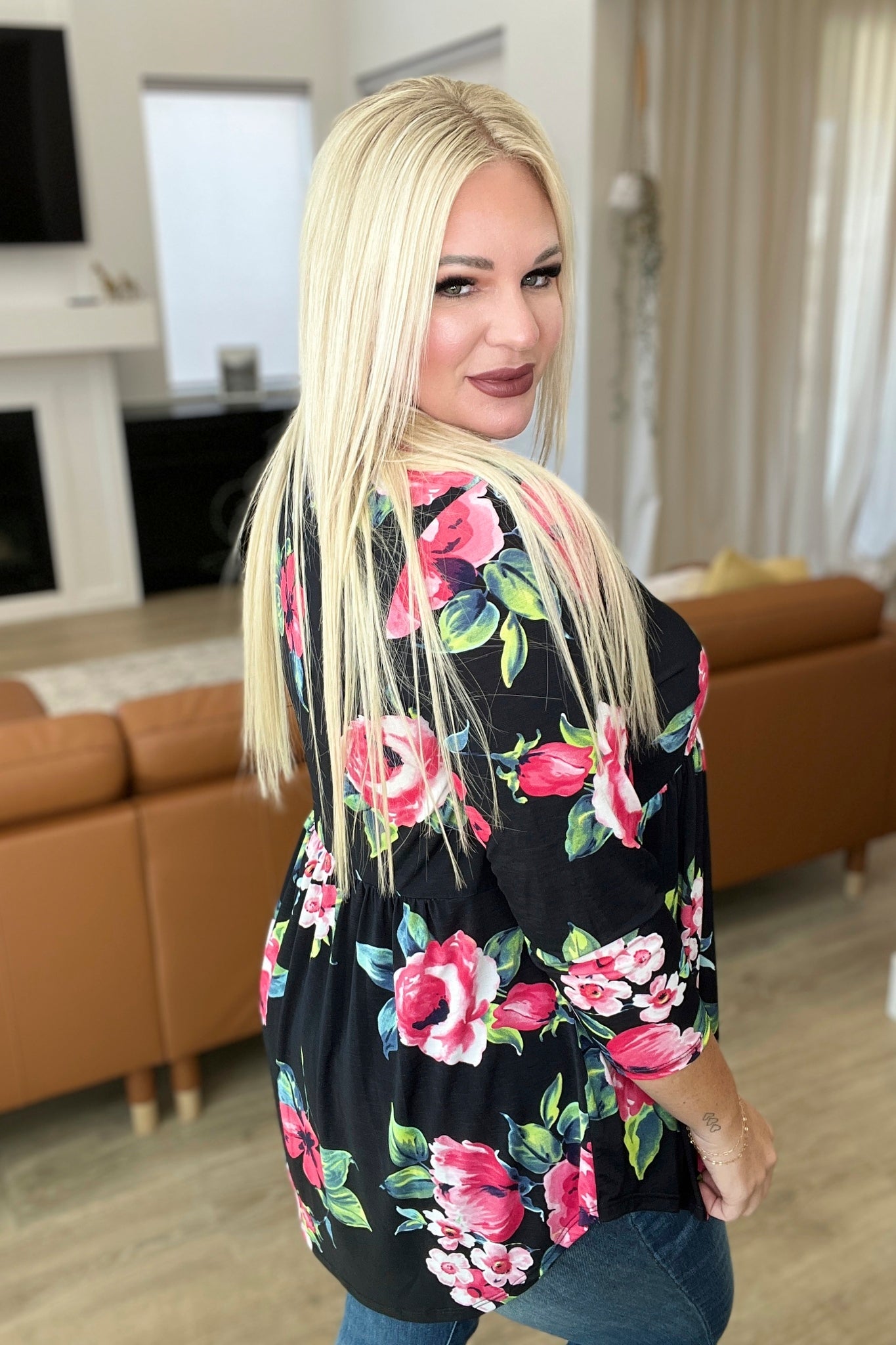 Show off your style with the Doing My Best Floral Top! Made of easy bulgari fabric, it features a bold floral print and a gathered babydoll cut, perfect for any occasion. Feel confident and comfortable in this fabulous top!