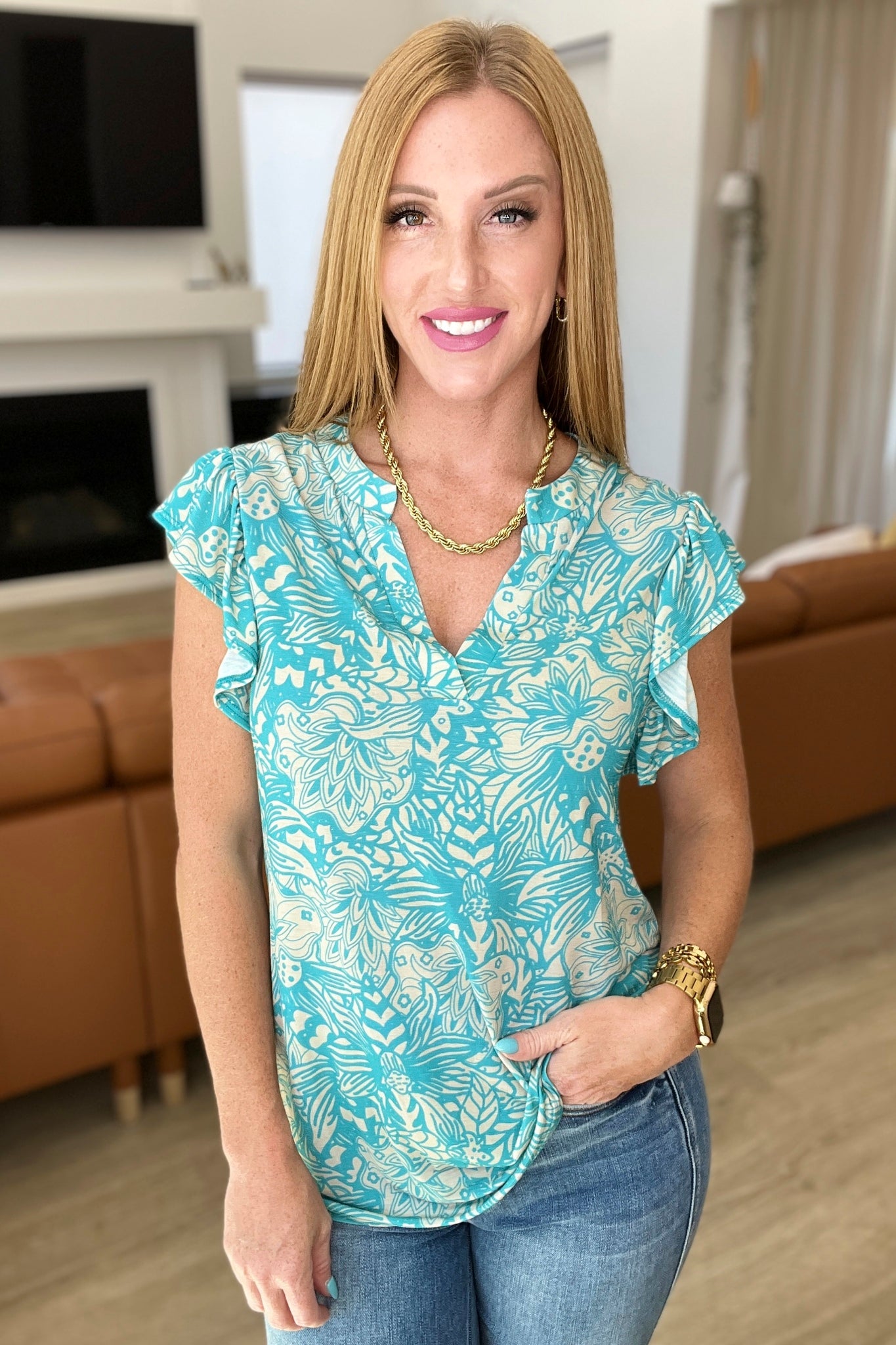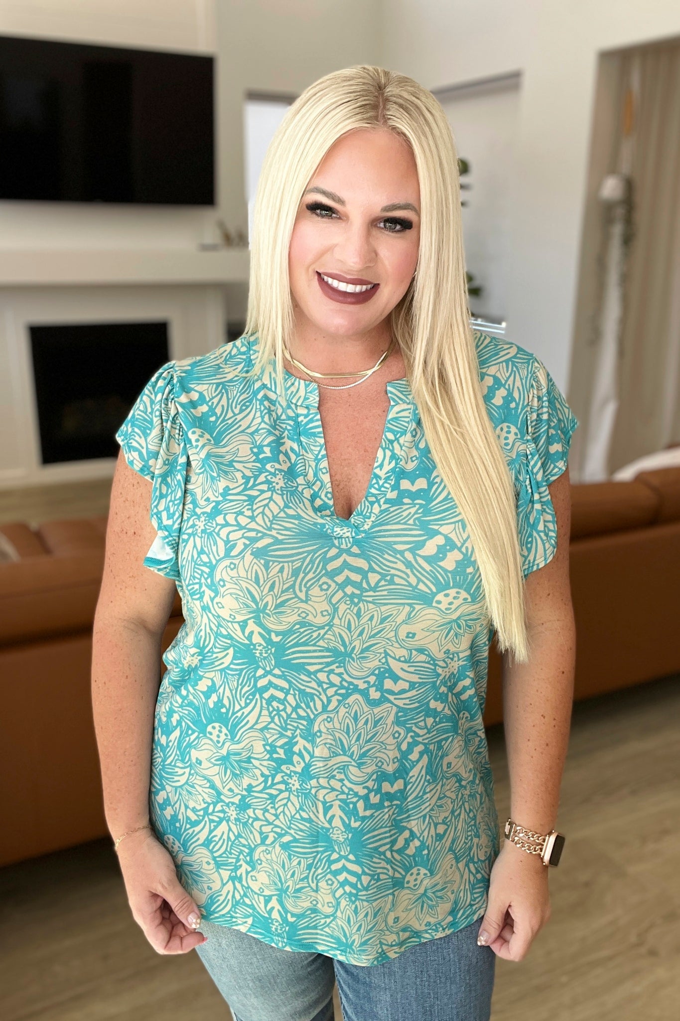 The Don't Overthink It Floral Top will have you looking beautiful and feeling confident this season! Made from lightweight bulgari fabric, this top features a V-neckline and flutter sleeves that add a touch of grace. Show off the lovely floral print and let your style bloom! Dare to stand out from the crowd while feeling comfortable and looking chic.