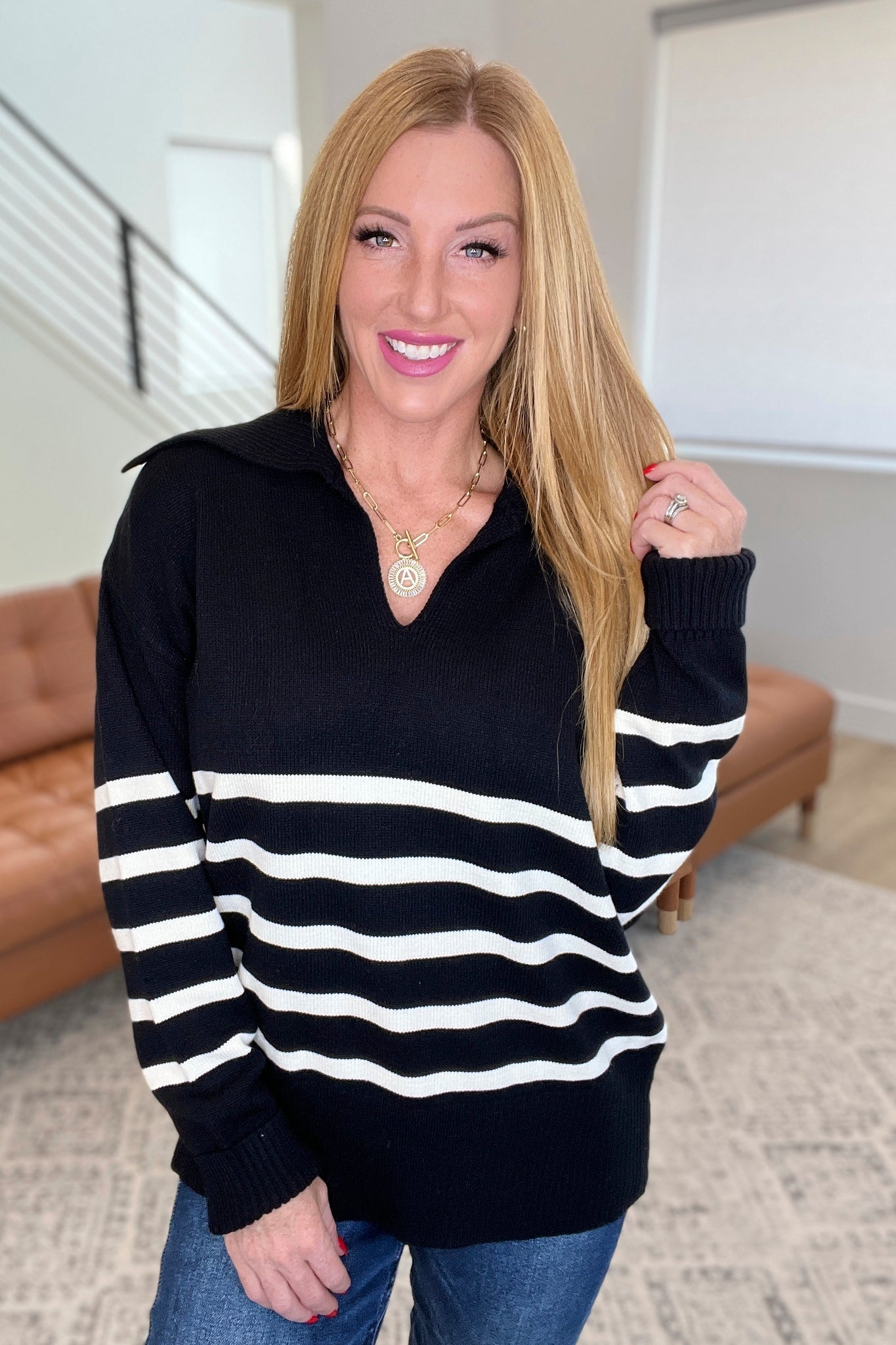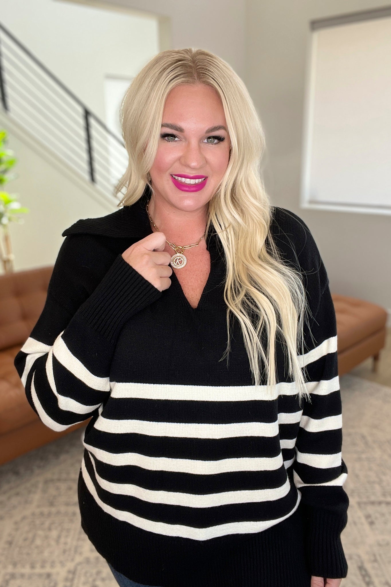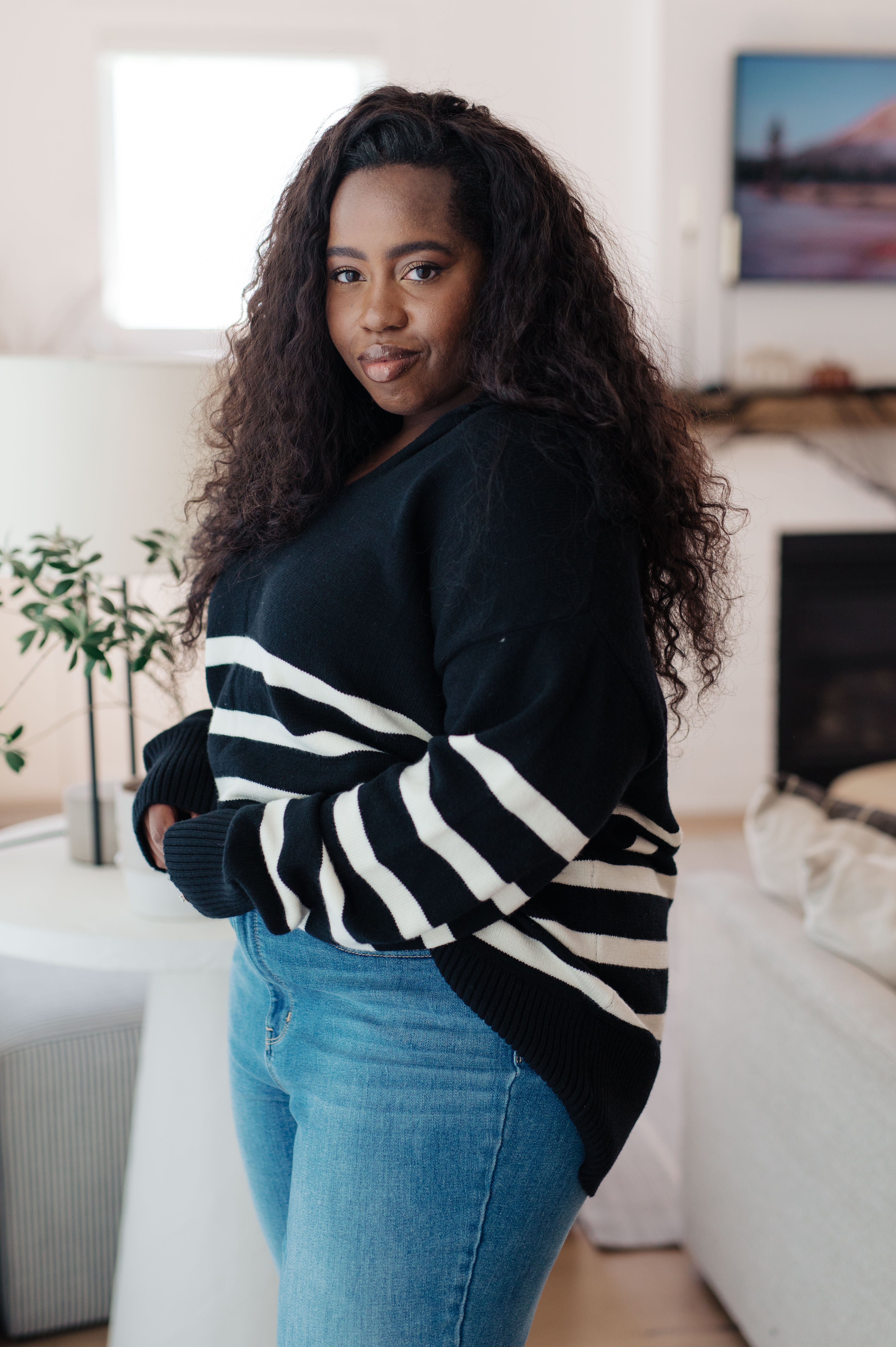 This From Here On Out Striped Sweater adds a bold statement to any wardrobe. It features a soft, sophisticated sweater knit, a collared v-neckline, and balloon sleeves with a relaxed fit. Enjoy the feel of the cozy material and the chicness of the bold stripes.