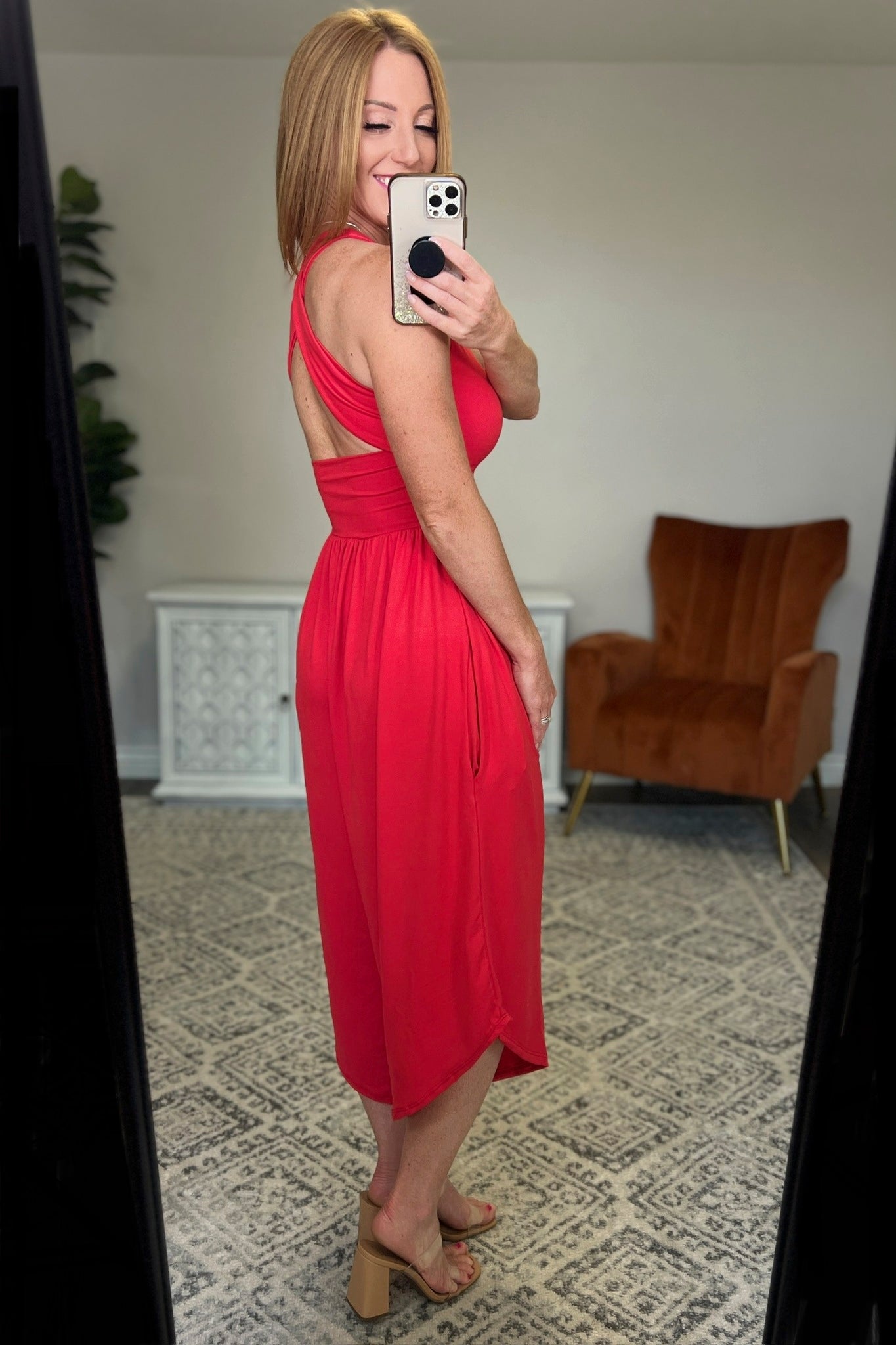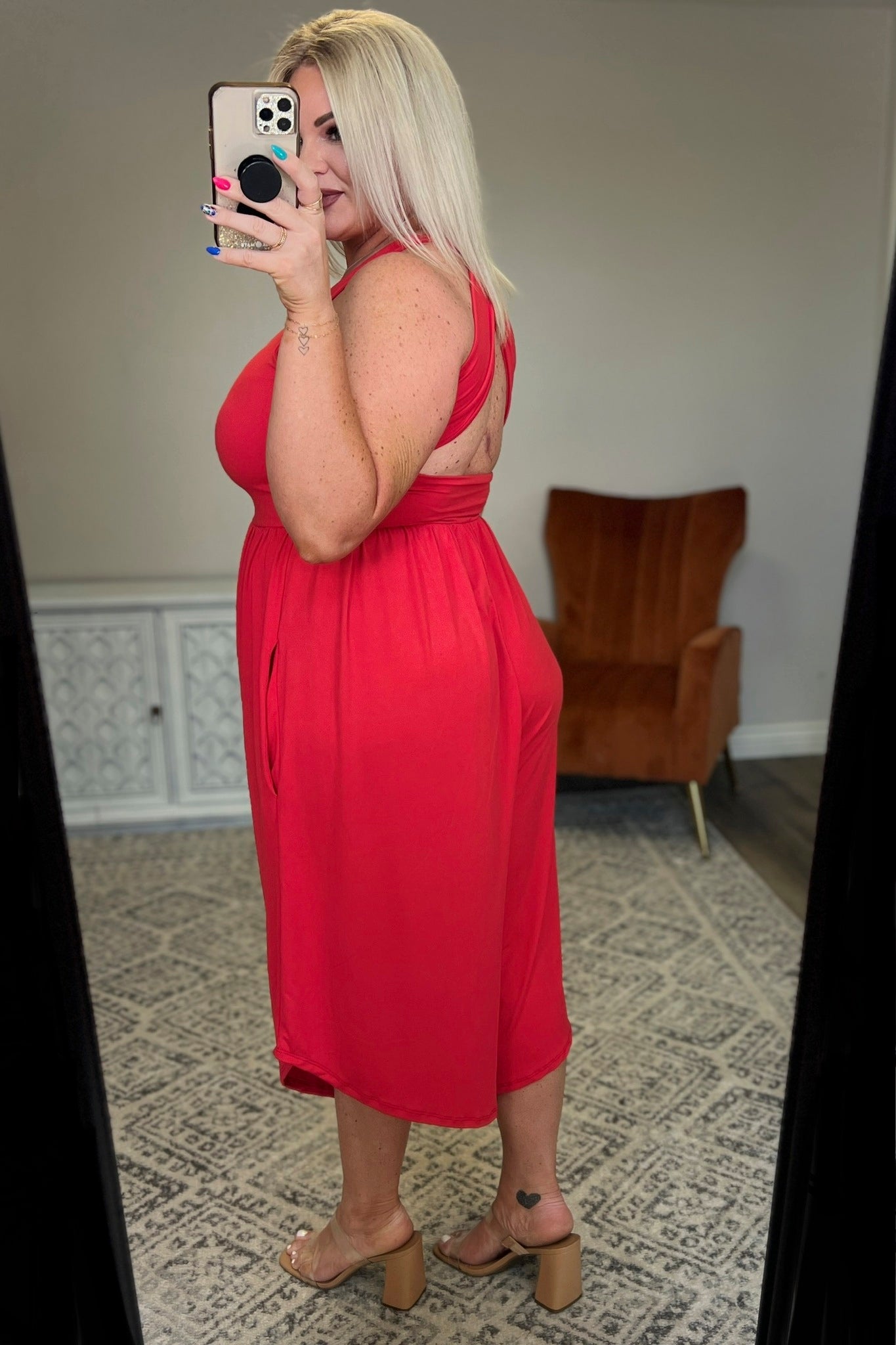 Your next good idea comes in the most stylish way with this trendy Good Ideas Jumpsuit! Featuring a scoop neckline, open back, and crisscross straps, this comfortable and stretchy jumpsuit is perfect for your everyday outings. You'll love the fitted bodice and the harem-style pants, designed to keep you looking your best every time.