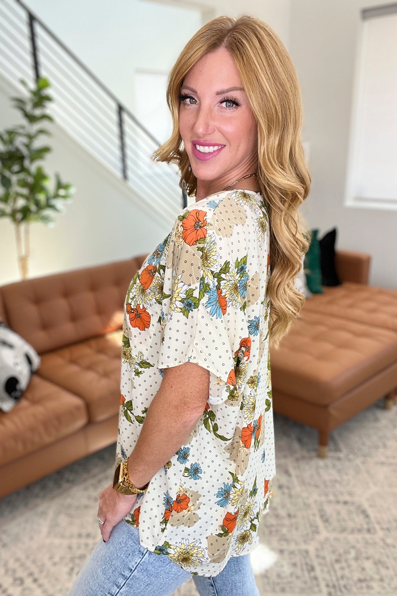 Welcome the sunshine with this Good Morning Floral V-Neck Blouse! Featuring a beautiful mixed floral print, an oversized fit, dolman sleeves, and a lightweight design, this blouse will make you feel ready for the day ahead! Look exquisite and feel chic each and every morning.