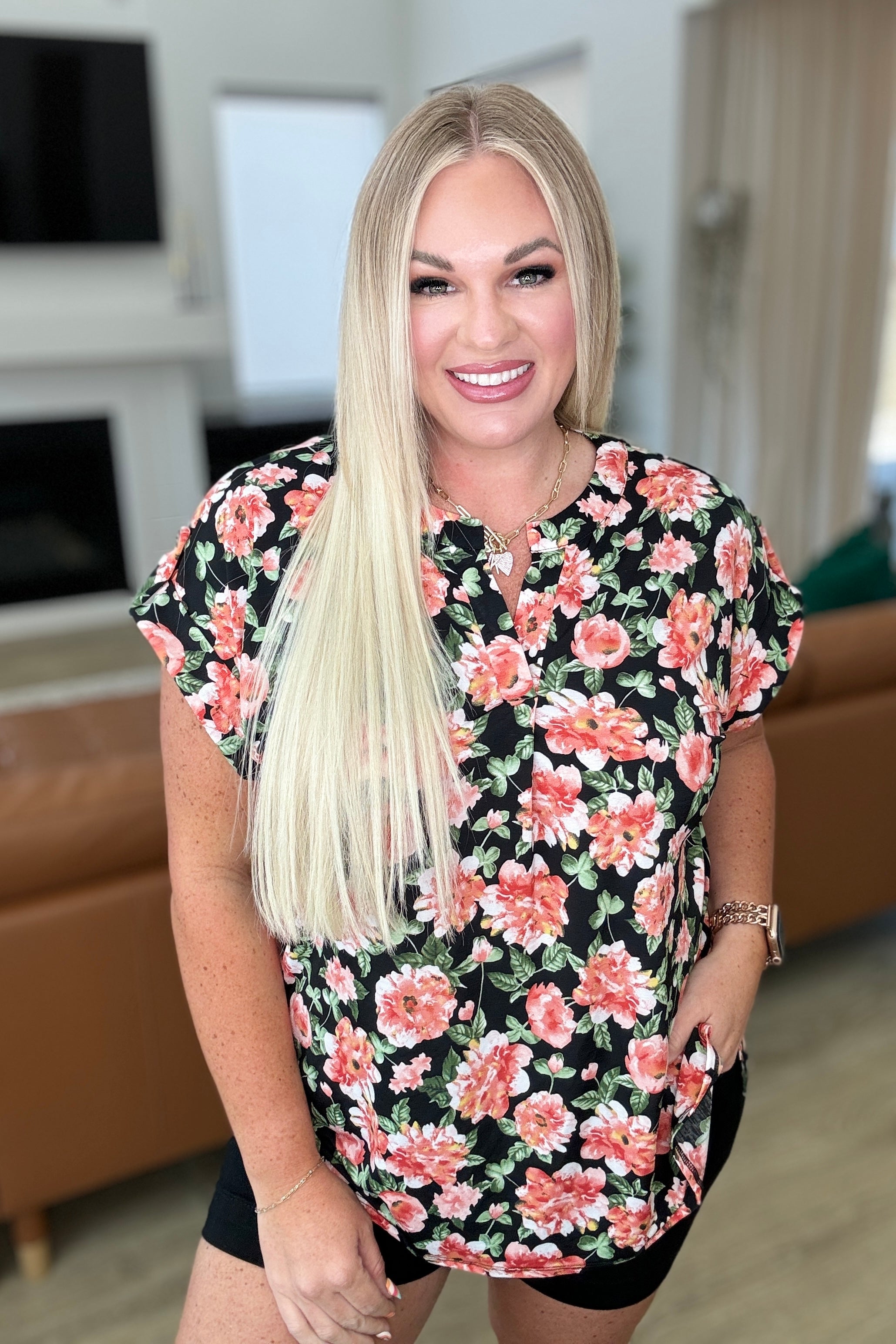 Lizzy Cap Sleeve Top in Black and Coral Floral