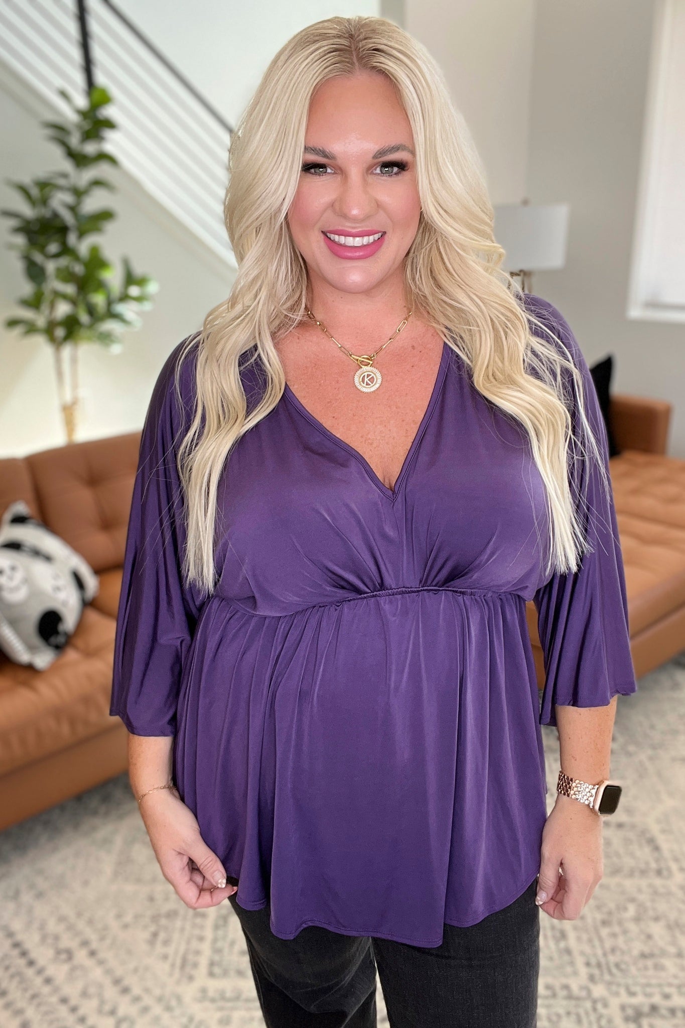 Freshen up your wardrobe with this Love On The Line V-Neck Peplum Blouse! Made from a slinky knit, this beautiful purple blouse features a v-neckline, dolman sleeves, and a flattering peplum style. Look your best with this stylish and comfortable blouse!