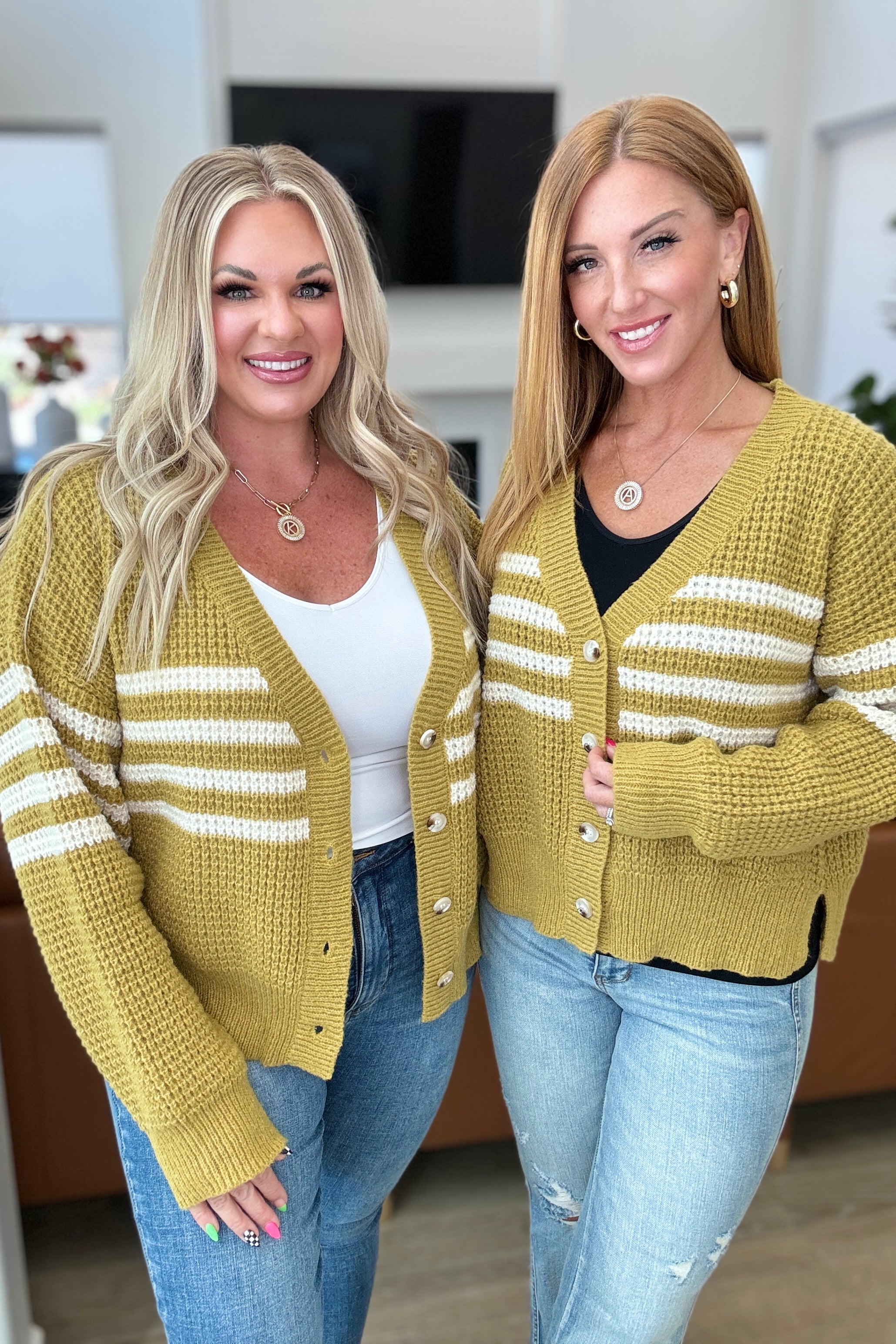 Experience the comfort and trendiness of our On Top of the World Striped Cardigan! Crafted with waffle sweater knit, ribbed knit trim, and a button-up v-neckline, you'll love the modern play on a collegiate classic with contrasting stripes. Feel confident in every look with this cute cardigan!