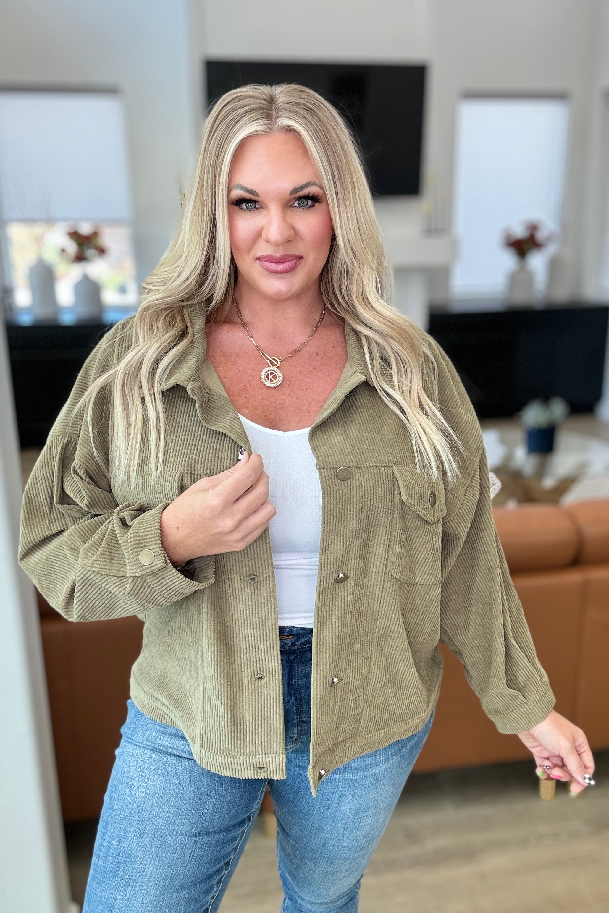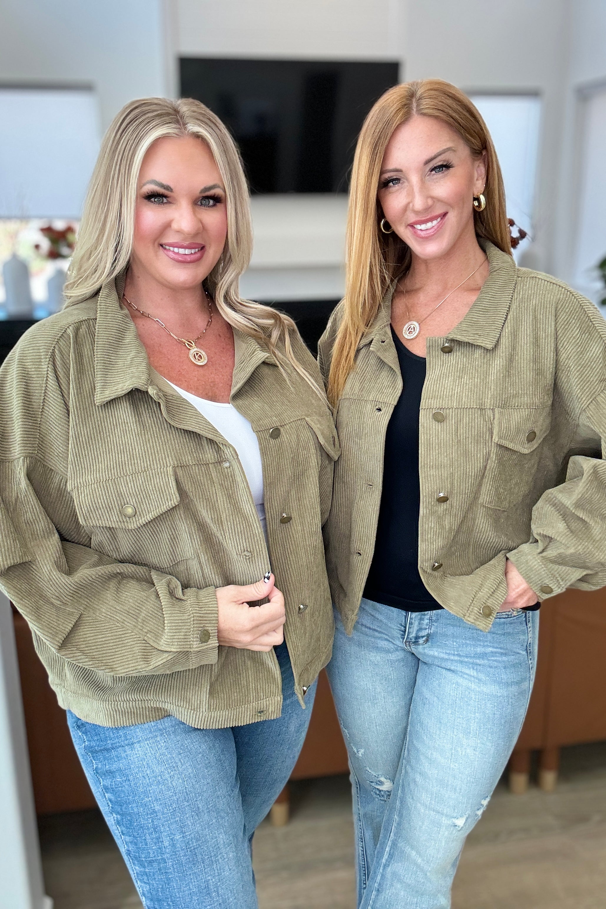 We are spending the rest of our days obsessing over the Primrose Corduroy Jacket. Composed of classic corduroy, with a collared neckline and long sleeves with button cuffs. The slightly oversized silhouette has a functional button placket down the center with pleated sleeve detailing.