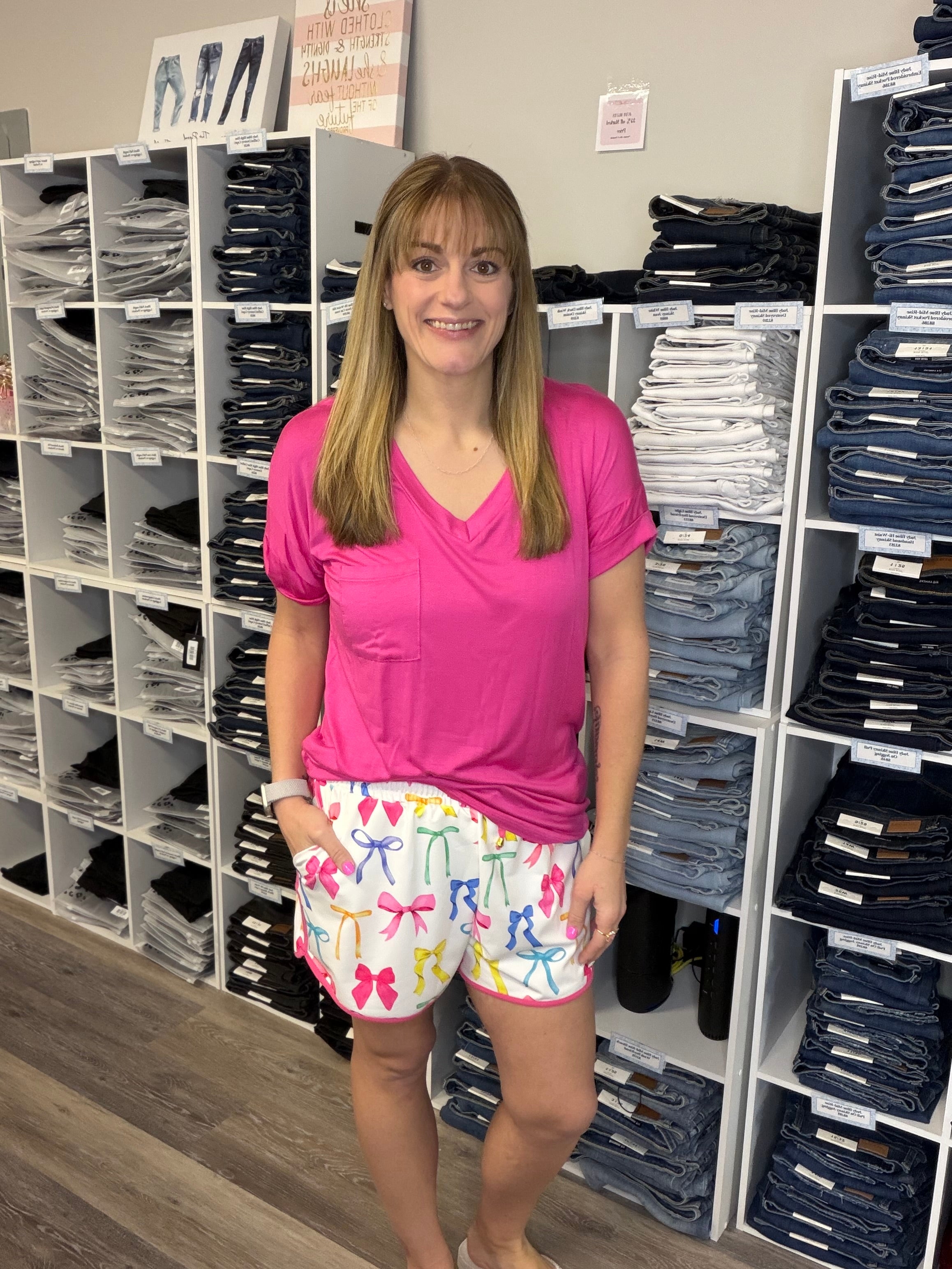 Step into spring and summer style with these Midnight Bow Neon Pastel Everyday Shorts—a fresh twist on a fan-favorite design. With a flattering mid-rise fit and all-day comfort, they're your go-to for everything from lazy lounging to beach adventures and quick errands. Flirty, trendy, and effortlessly cool, these shorts bring that perfect blend of playful flair and wearable ease to your seasonal wardrobe.