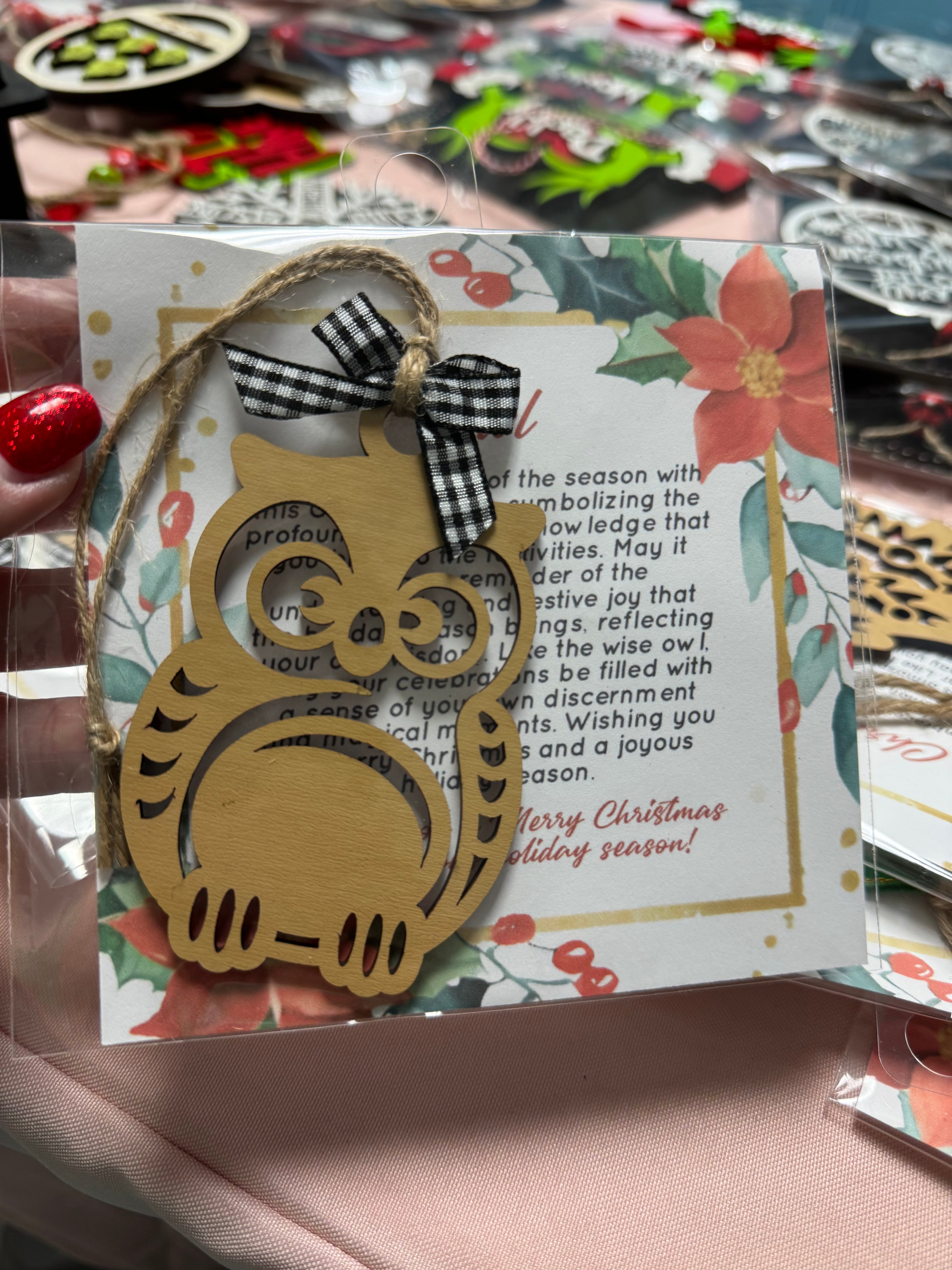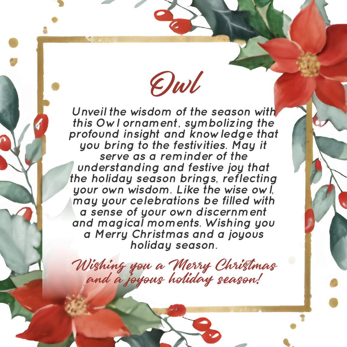 A perfect way to infuse your festive decor with meaning. Each ornament features a distinct symbol associated with the holiday spirit, creating a touch of magic for your celebrations. From timeless angels to vibrant Cardinals, charming polar bears, wise owls, and glowing candles, these ornaments carry the essence of the season. What makes this collection truly special is the included message with each ornament, explaining the broader significance behind the symbol. It's a thoughtful touch that transforms these ornaments into more than decorations; they become heartfelt tokens with a story to tell. Share the joy of the season by gifting our "Holiday Symbol Ornaments" and let the warmth of tradition brighten your holiday gatherings.