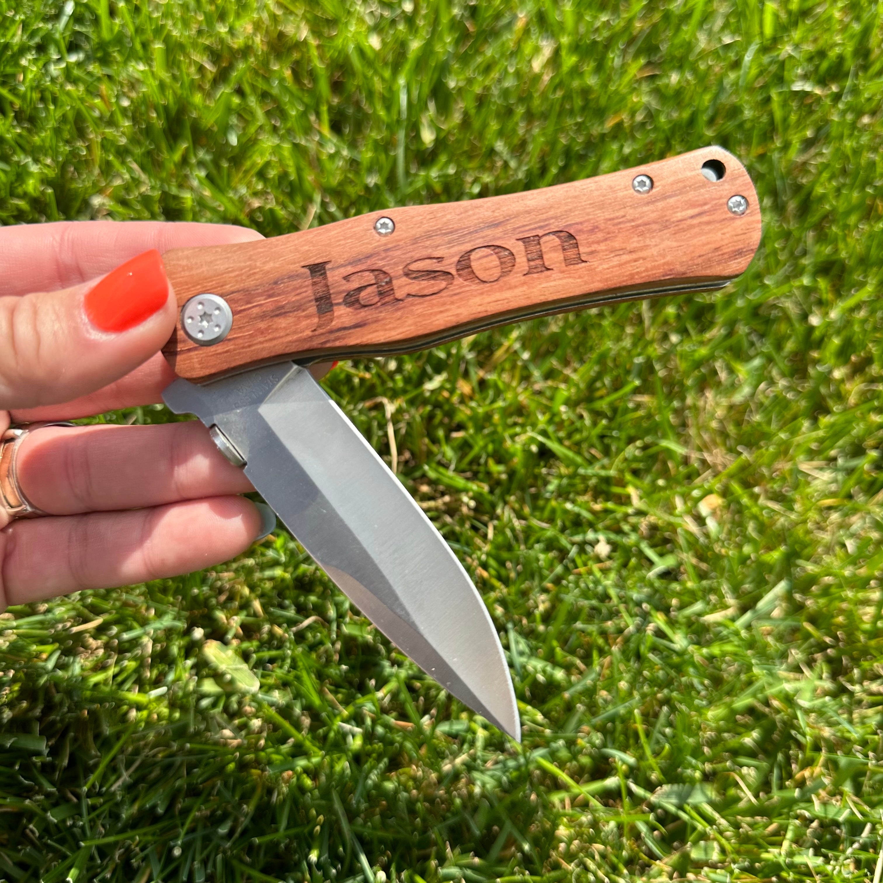 This is a 4 1/2 wood handle knife with a 3.5” stainless steel blade. It comes with a gift box!
