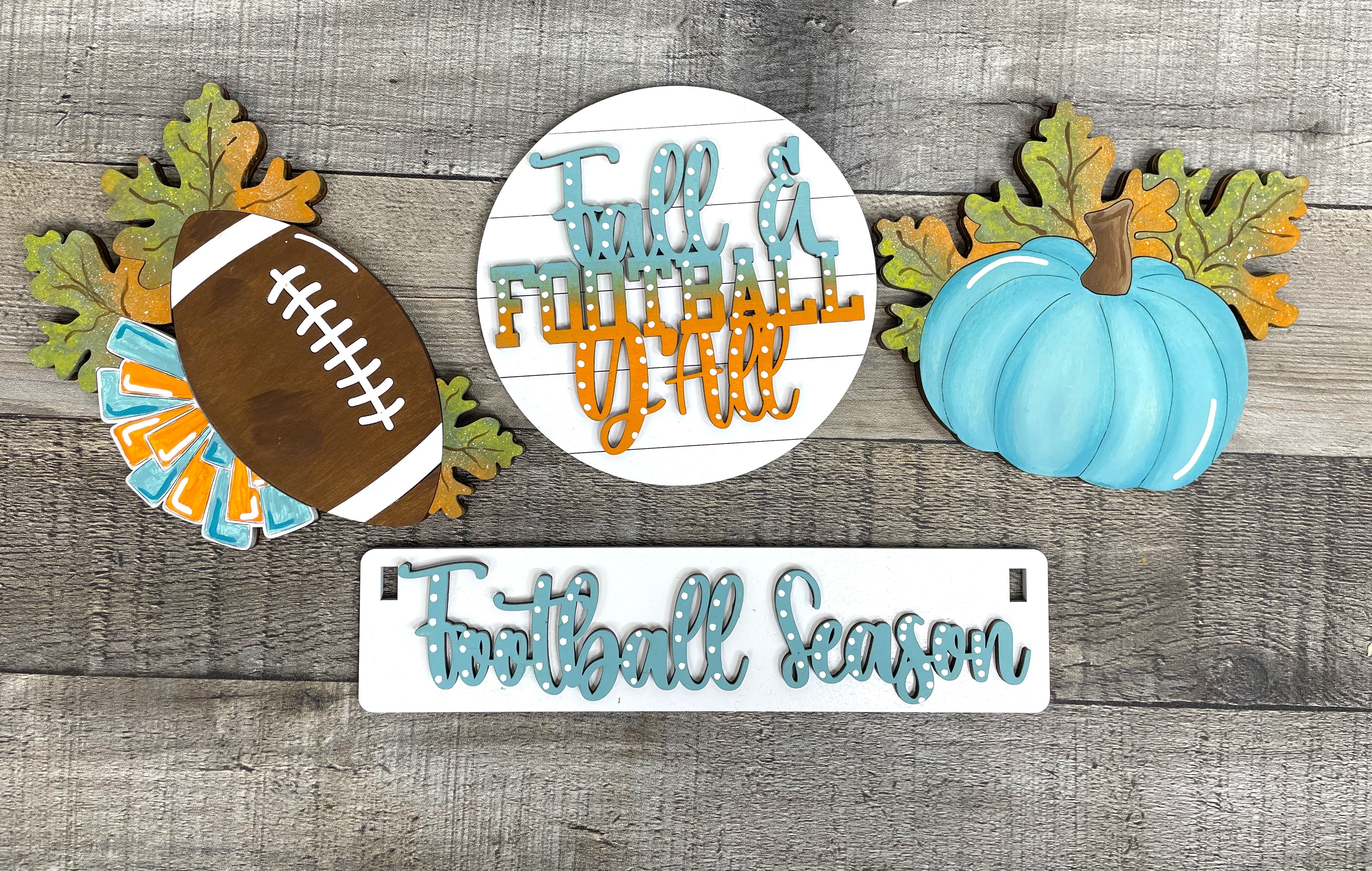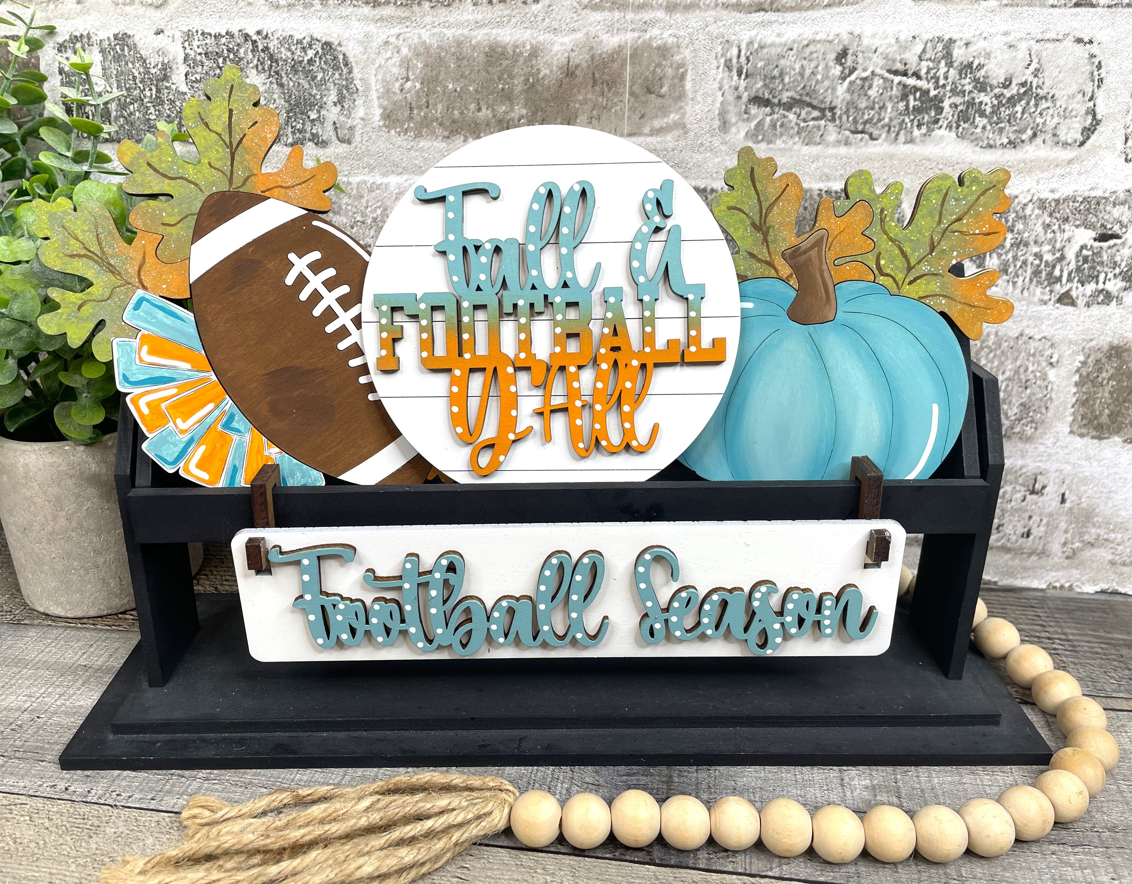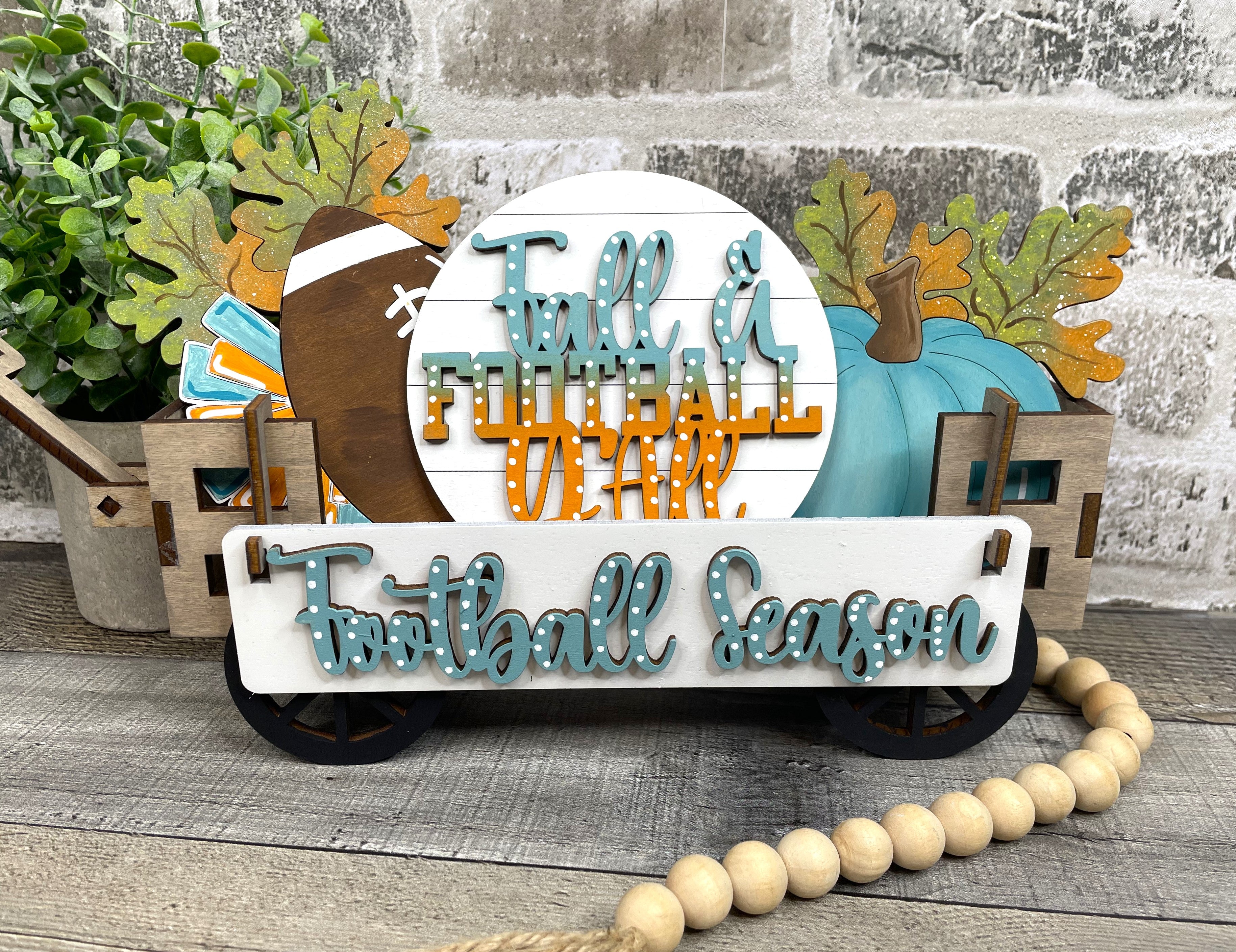 This Football Season DIY Set includes all the wood cut outs needed to create three adorable cutouts that fit in our interchangeable wagon. Great for a tier tray as well!