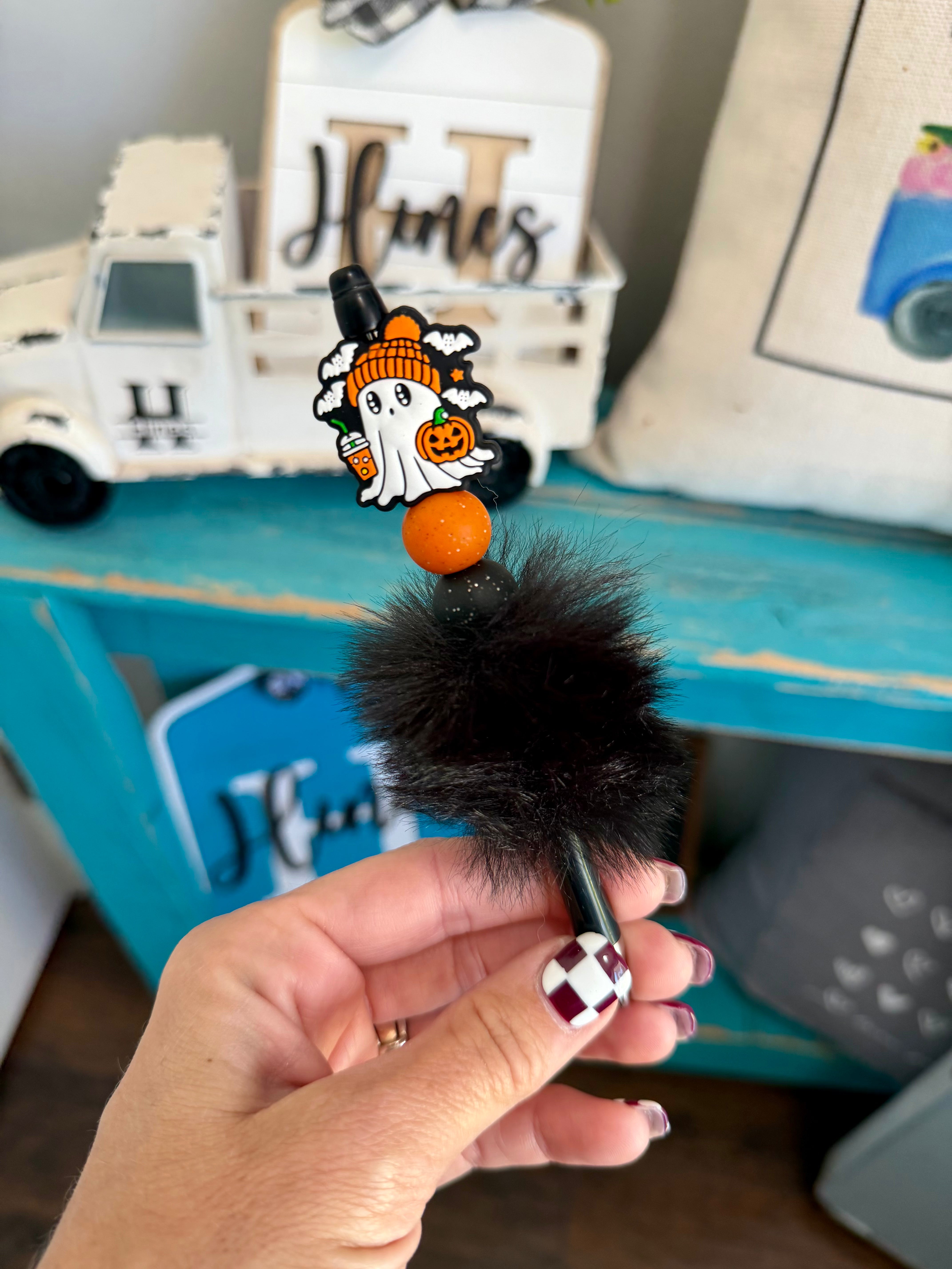 Made with food grade silicone beads and end pieces. Writes in black ink.