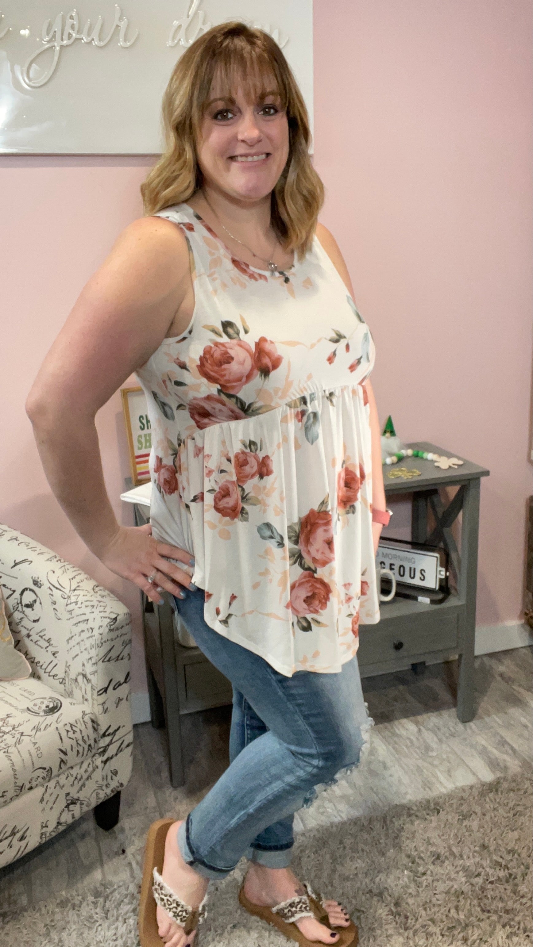 Ivory Floral Tank Top